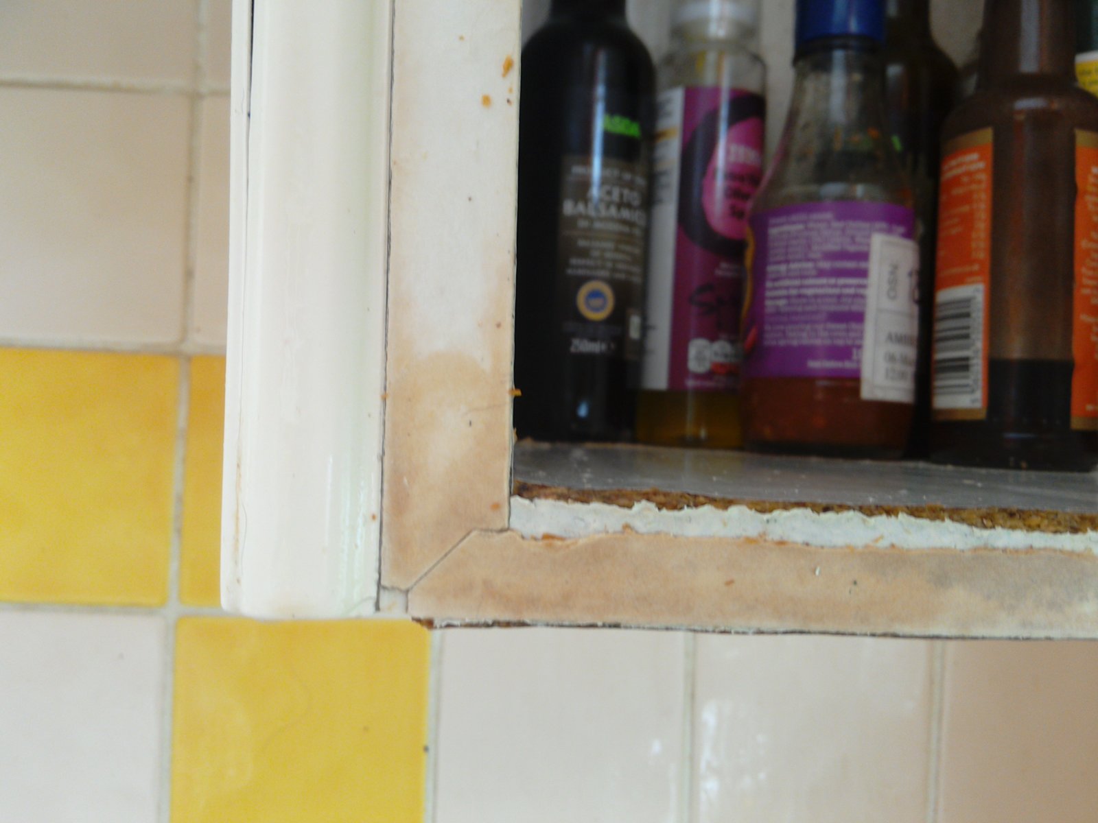 Should I attempt to repair/repaint these shelf edges, or cover the shelf with Fablon, or buy two new 300w kitchen wall carcases?