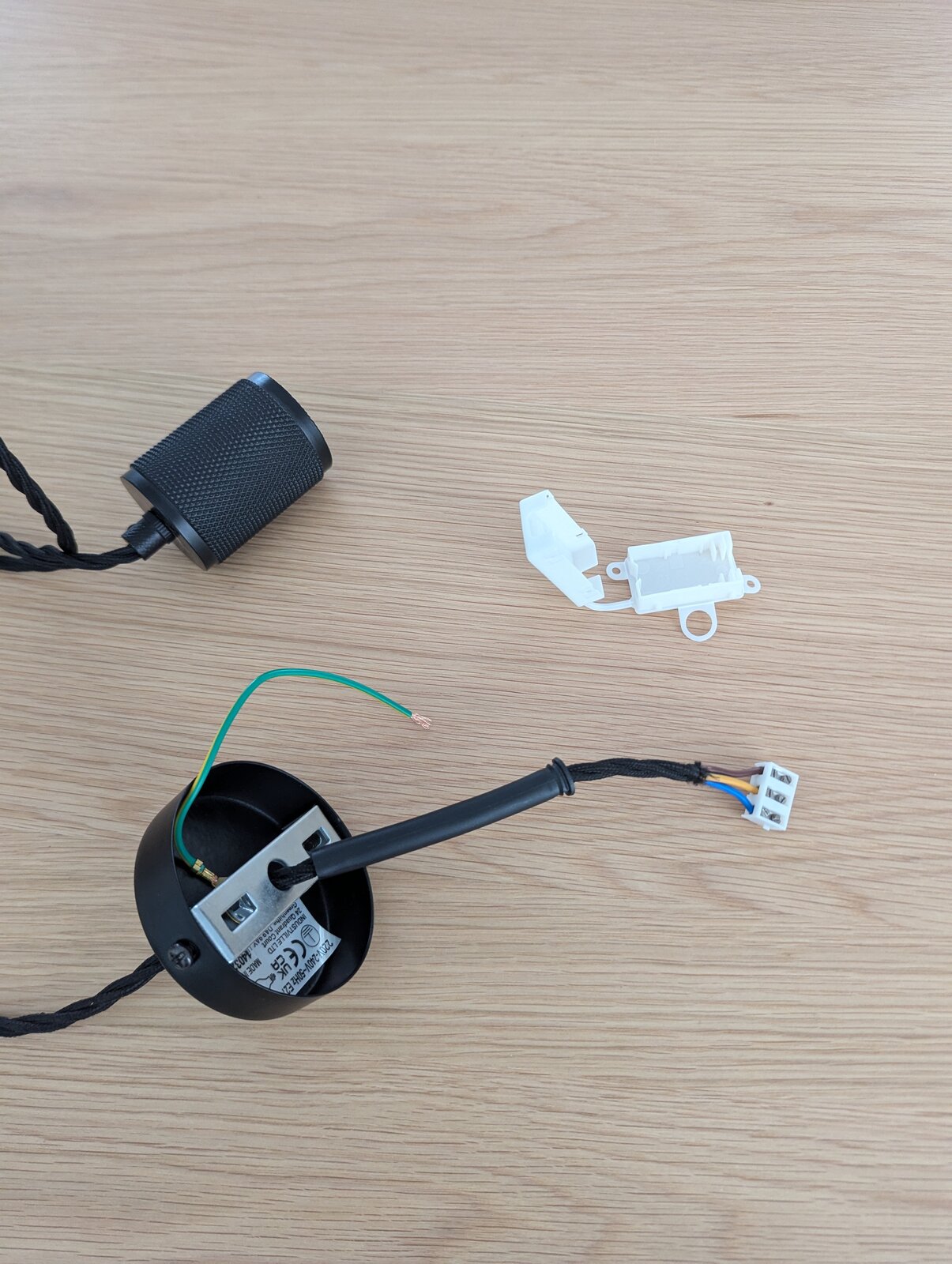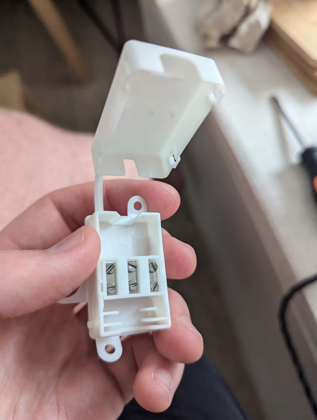 It's worth nothing the connector junction box was provided with the new light fixing.