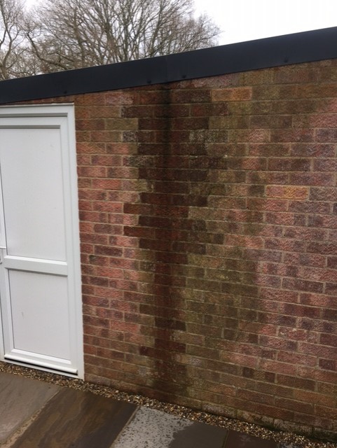 Looking for some advice on how to prevent water staining of brickwork below overlap edge joints to a plastisol coated metal roof (see photos). I was planning to use silicone sealant along the overlap joints to try and prevent the capillary dripping ? Any thoughts or advice appreciated.