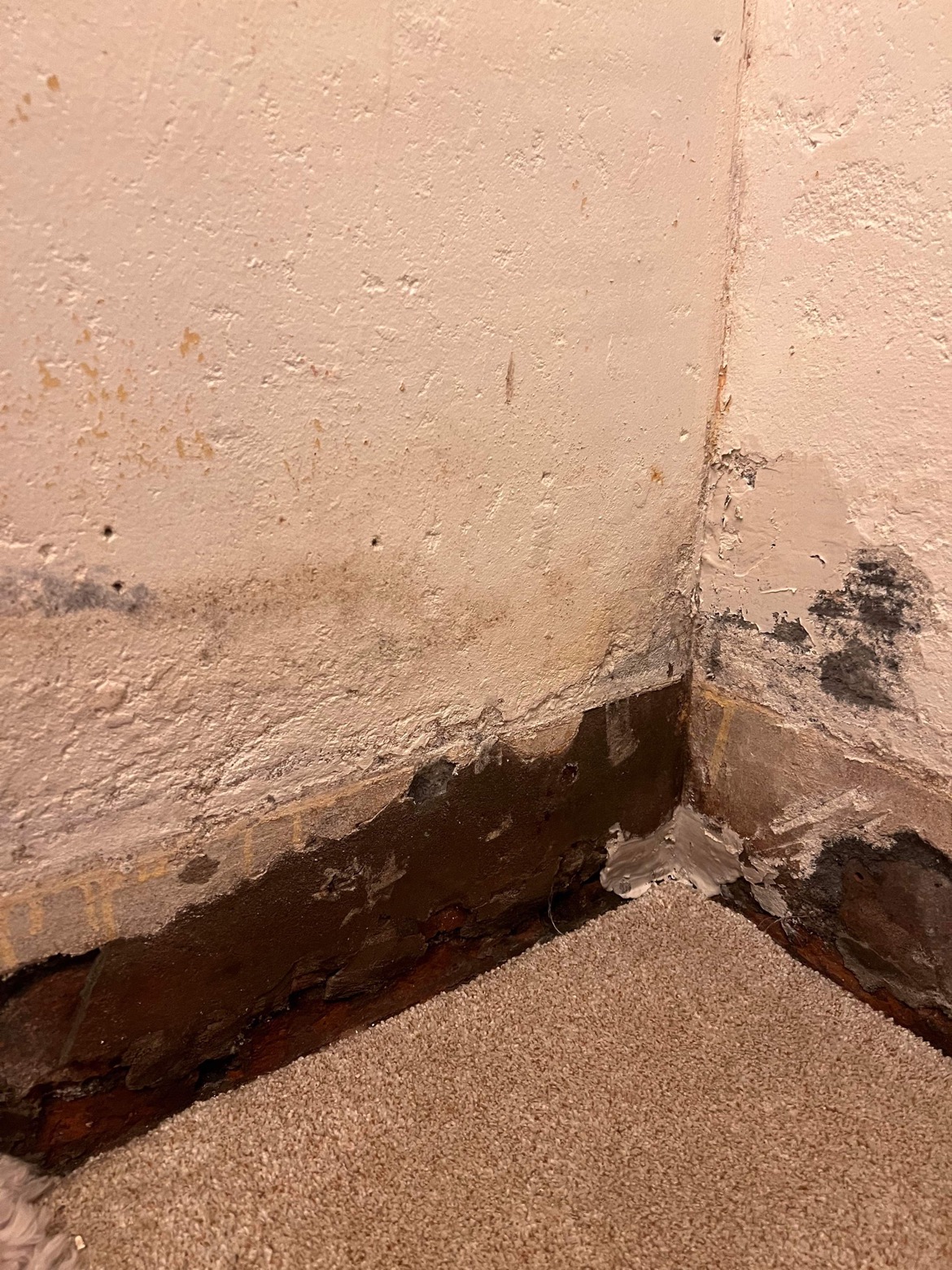 Ive added some photos. Please note, the one of the external wall, there is a shadow from the wall that makes it look worse than it is. There is green moss growing on the damp section.