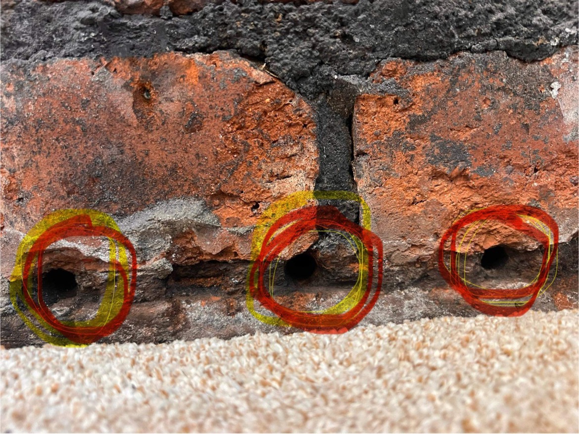 You can see the internal wall, which I am in the process of hacking off. Also, along the lower course of bricks, there are holes every 8 cm in the mortar line, so not sure if someone has tried something before.