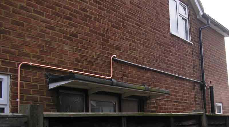 My neighbour is having a new bathroom installed. They have run a gas pipe from the gas meter along the side of the house, round the front door and into the upstairs bathroom. The pipe is completely exposed on the side of the house. (picture can be supplied). Doesn't look safe to me - can they do this?????[/img]