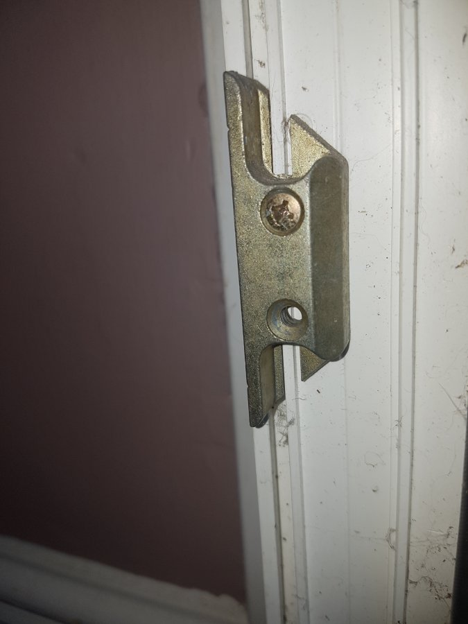 The upper catch on my front door appears to have fallen off sometime recently. I've attached two photographs, one of the bottom catch which is still in place and one showing the area of the missing catch at the top of the door. The door is multi-point, so there are also hooks as well.