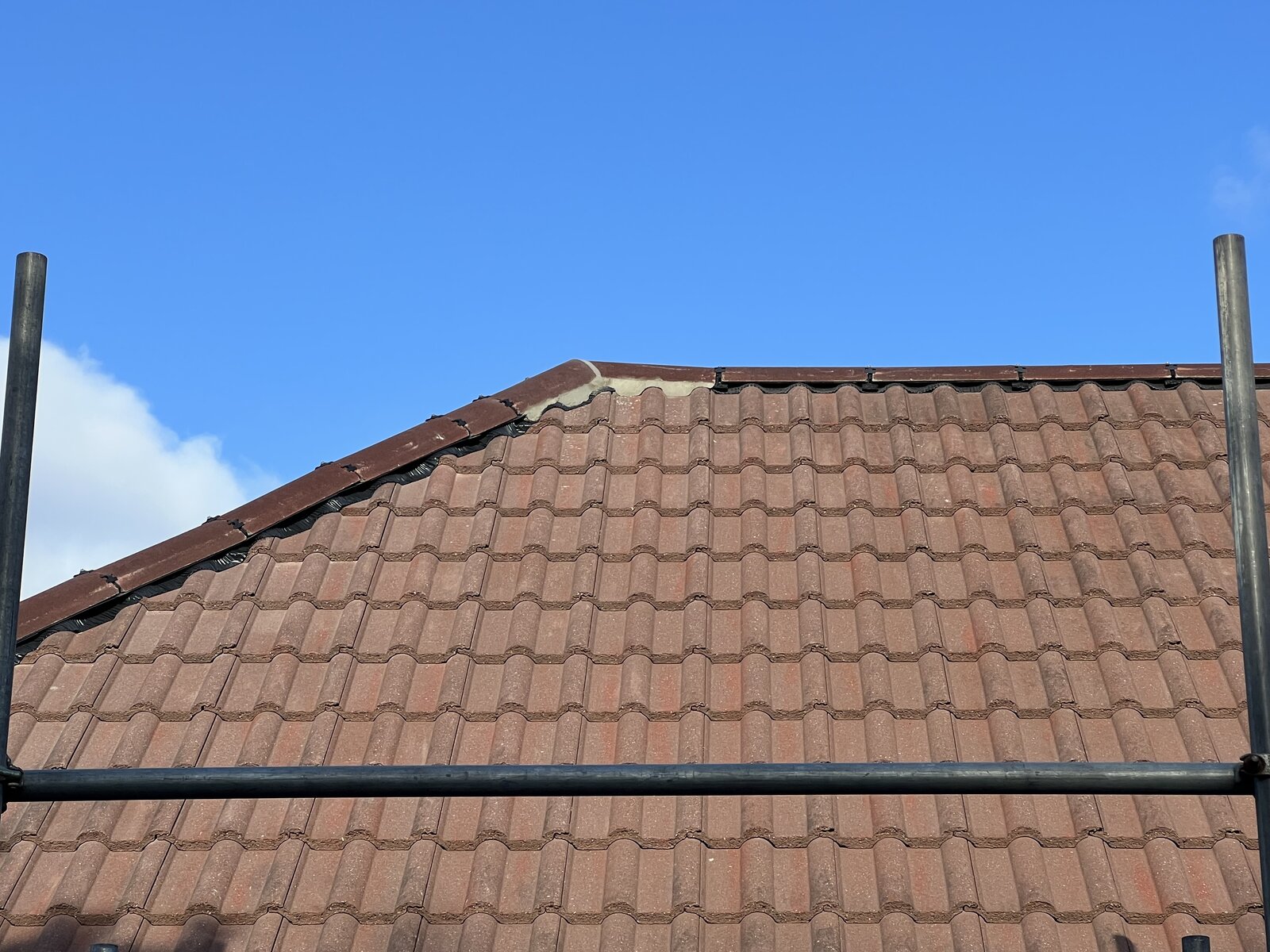 I just wanted to know what people in the trade thought of the mitre joints to the ridge and hips. Should it have been in black, at a leaser angle, less cement? Wife is not happy!!