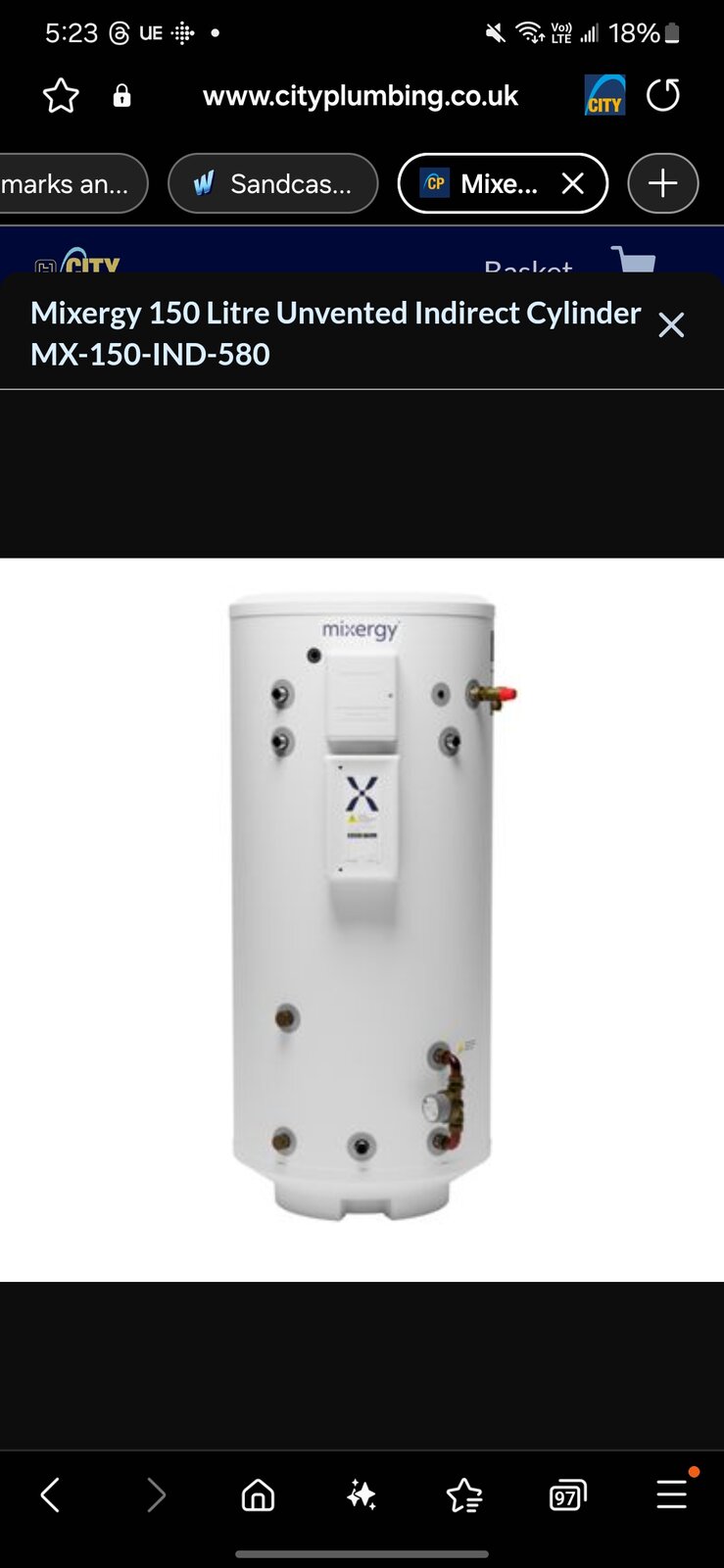 One of my friend has had a quote for mixergy unvented cylinder 150l