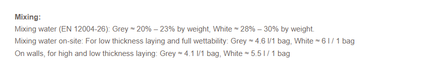 Can someone please tell me what the ratio is for mixing Kerakoll H40 Advanced Gel Tile Adhesive