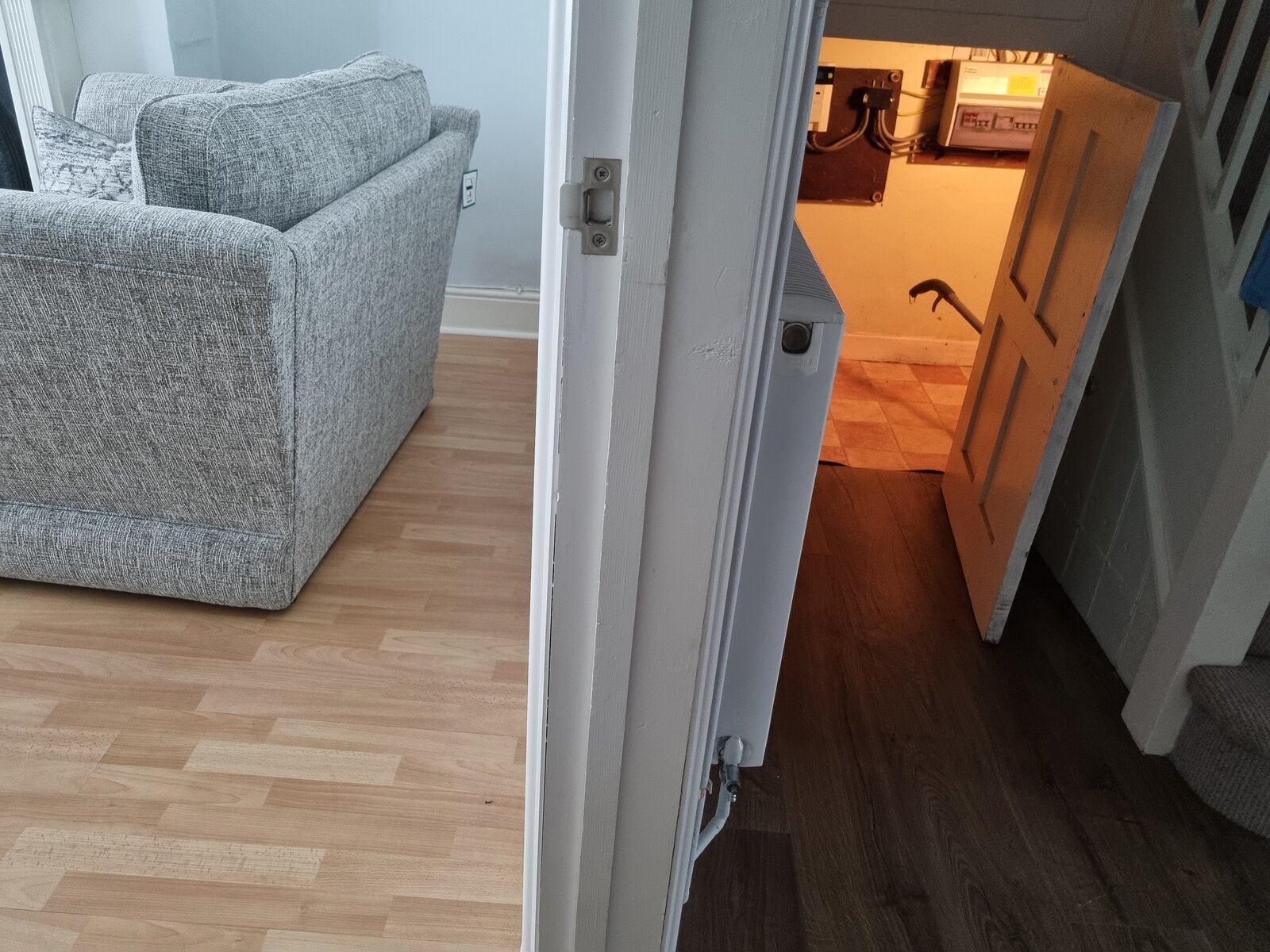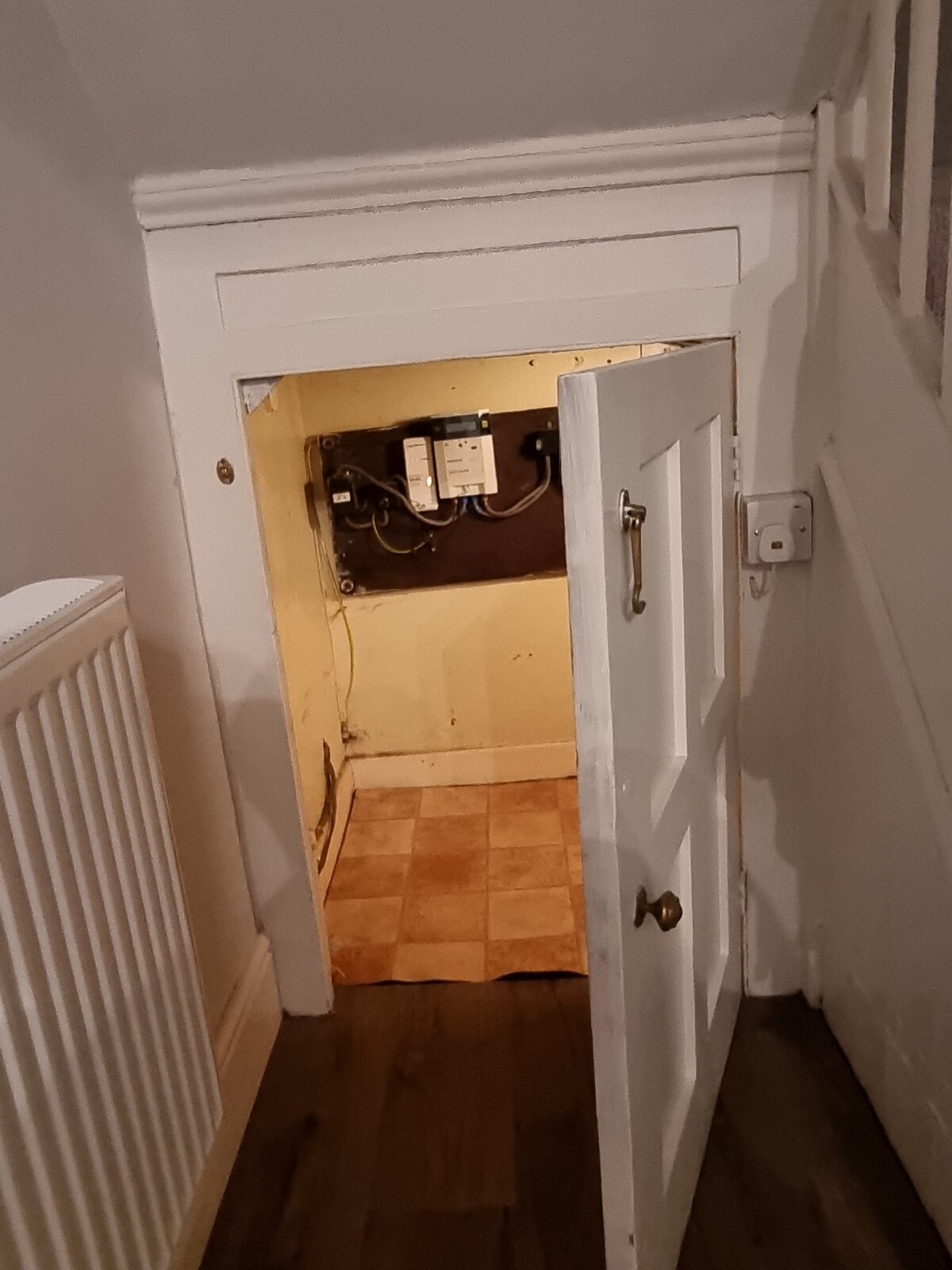 Recently bought a home, been here around 1 week and noticed an earthy smell inside the cupboard under the stairs.