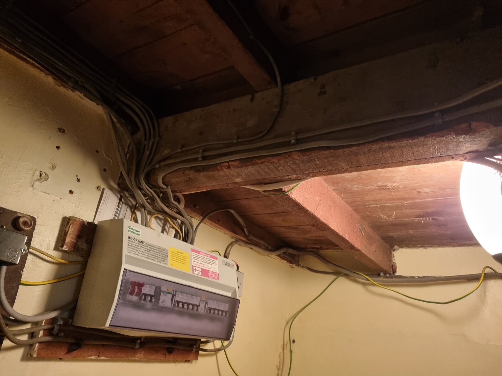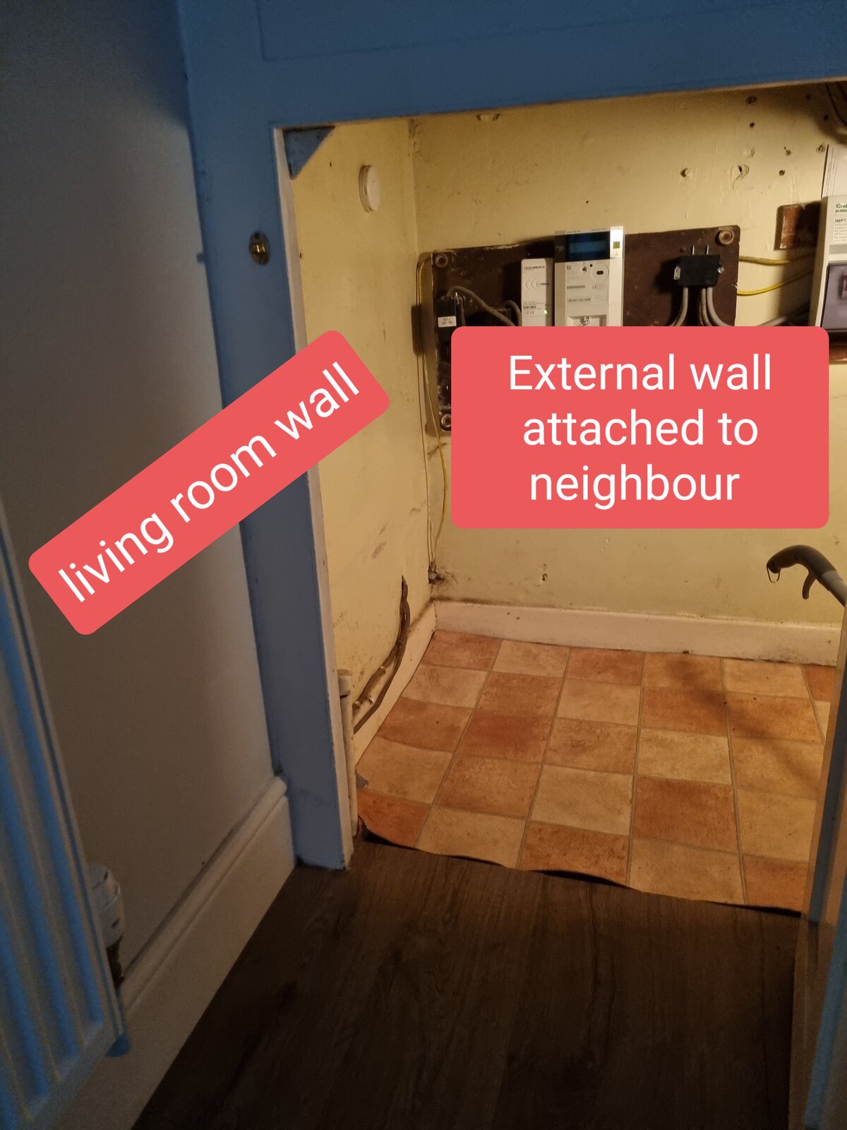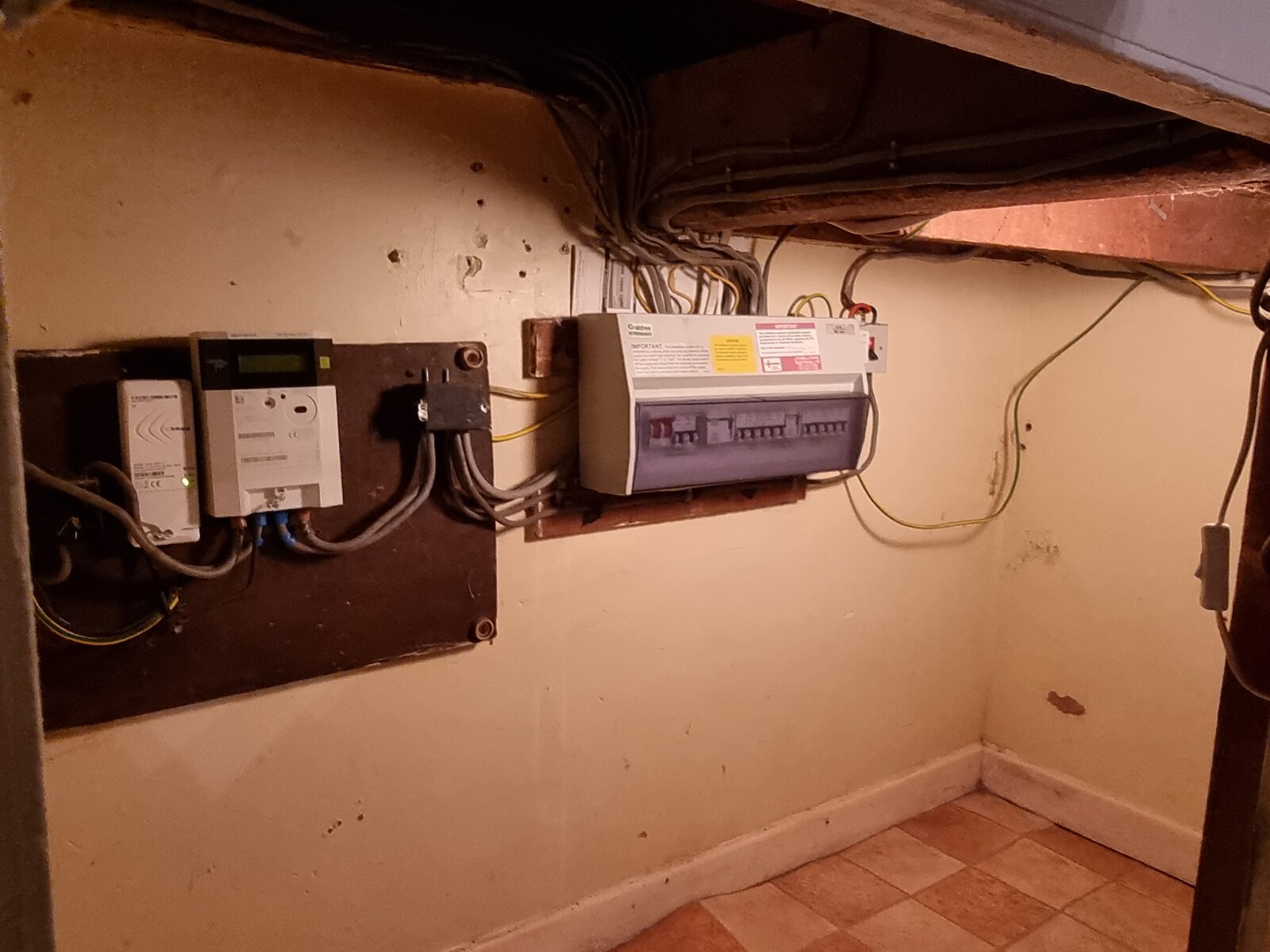 This is where the electrics is located. My knowledge isn't great with this however the texture under the laid down flooring feels like cement, parts of it feel slightly damp (barely). I lifted the matt up which is currently covering it and took pictures which I will provide with this post.