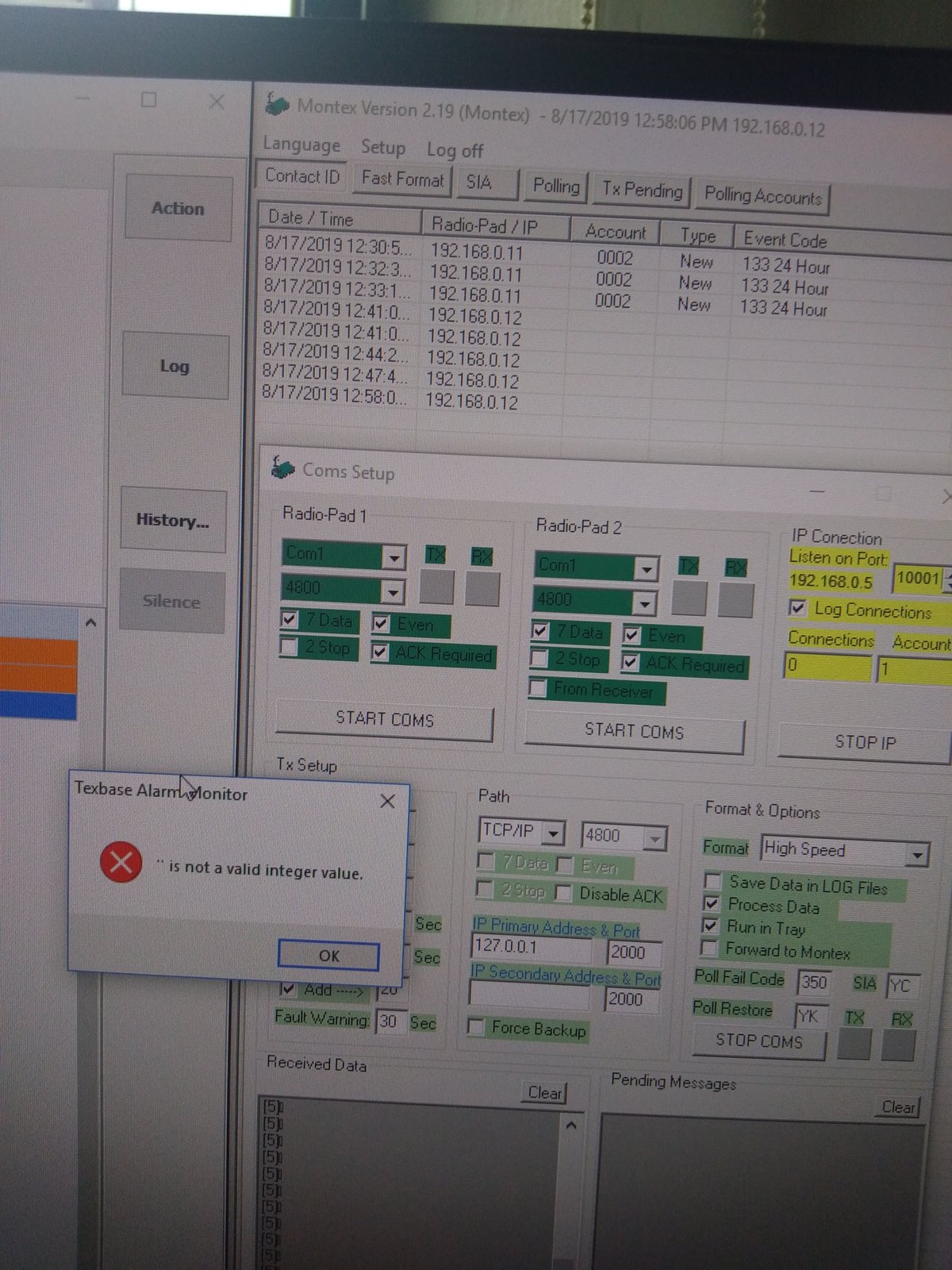 Currently i configure the local host port to 10001 of both panel of elite 88, ARC 2 primary is 192.xxx.x.xx/10003,protocol contact id, option1 comip and option comport1 where comip was configured ..im getting [5's on montex but no feedback from both panels..am i doing it correctly.