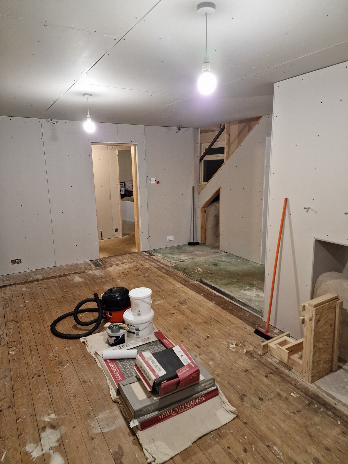 For example, where you have skillfully noted a plasterboard joint that is not flush, there is no plasterboard joint - please see the 'before' pic!