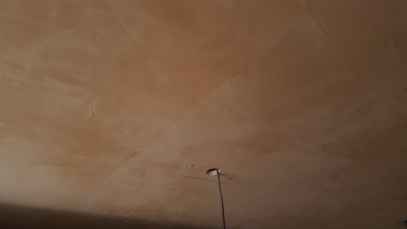 My queries relate to the rest of the work. There are visible sweeping trowel marks on the wall, some of which are rough to the touch. On the ceiling there are small ridges where it looks like he didn't fully spread all the plaster. In other sections the bits that have been filled are obvious. They're a bit difficult to photograph, but hopefully you can see what I'm talking about and give me your opinion as this is my first house, and my first building experience.