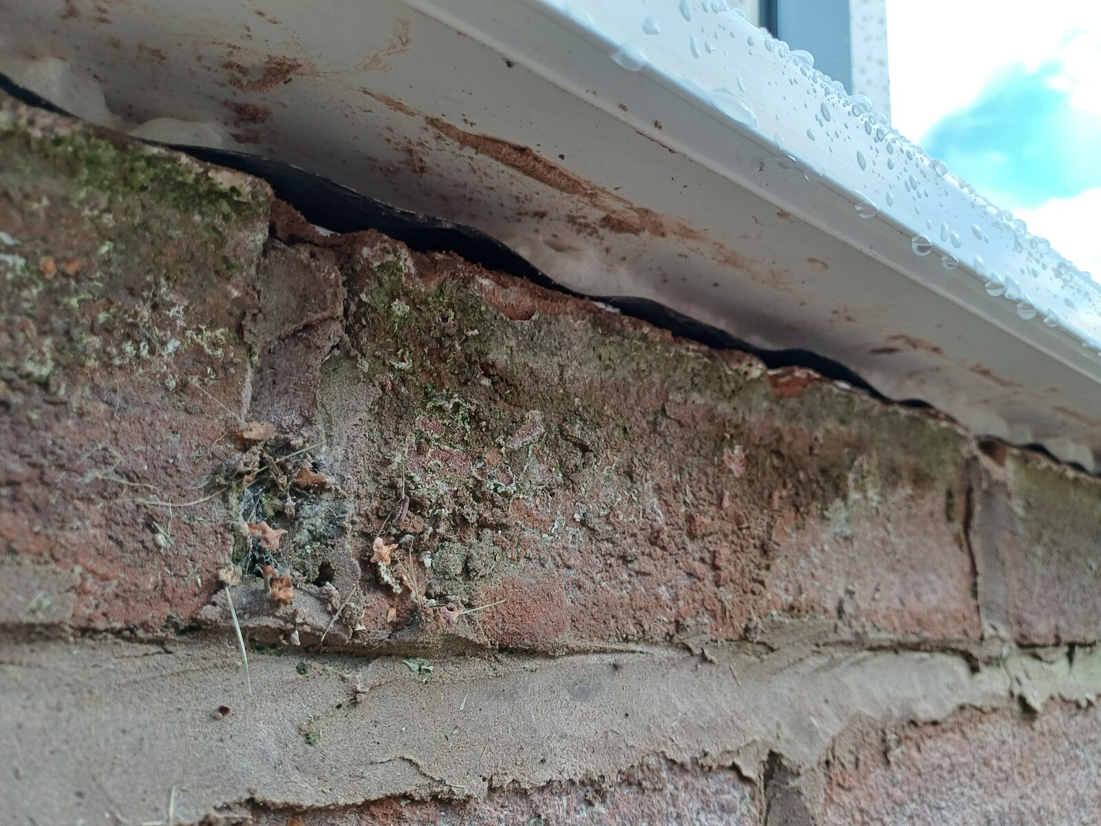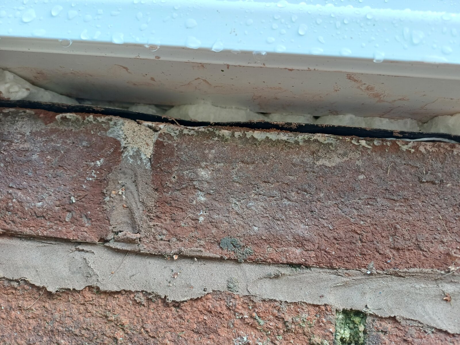 Underneath the sill needs finishing off. A DPC was put on top of the pre existing bricks at the bottom and foam has been squirted in to fill the main space below the sill (see photos). I won't go into why this space exists or remains, too long a story. Now it needs mortar putting in to finish it off flush with the bricks and seal the space. What can I do to give it the best chance of lasting and not cracking etc? I have a tub of pvc and SBR, would that help?