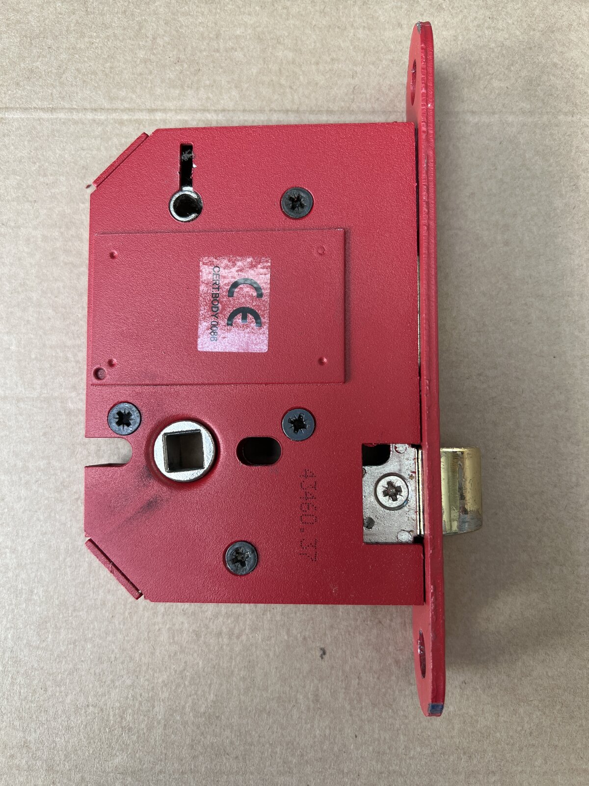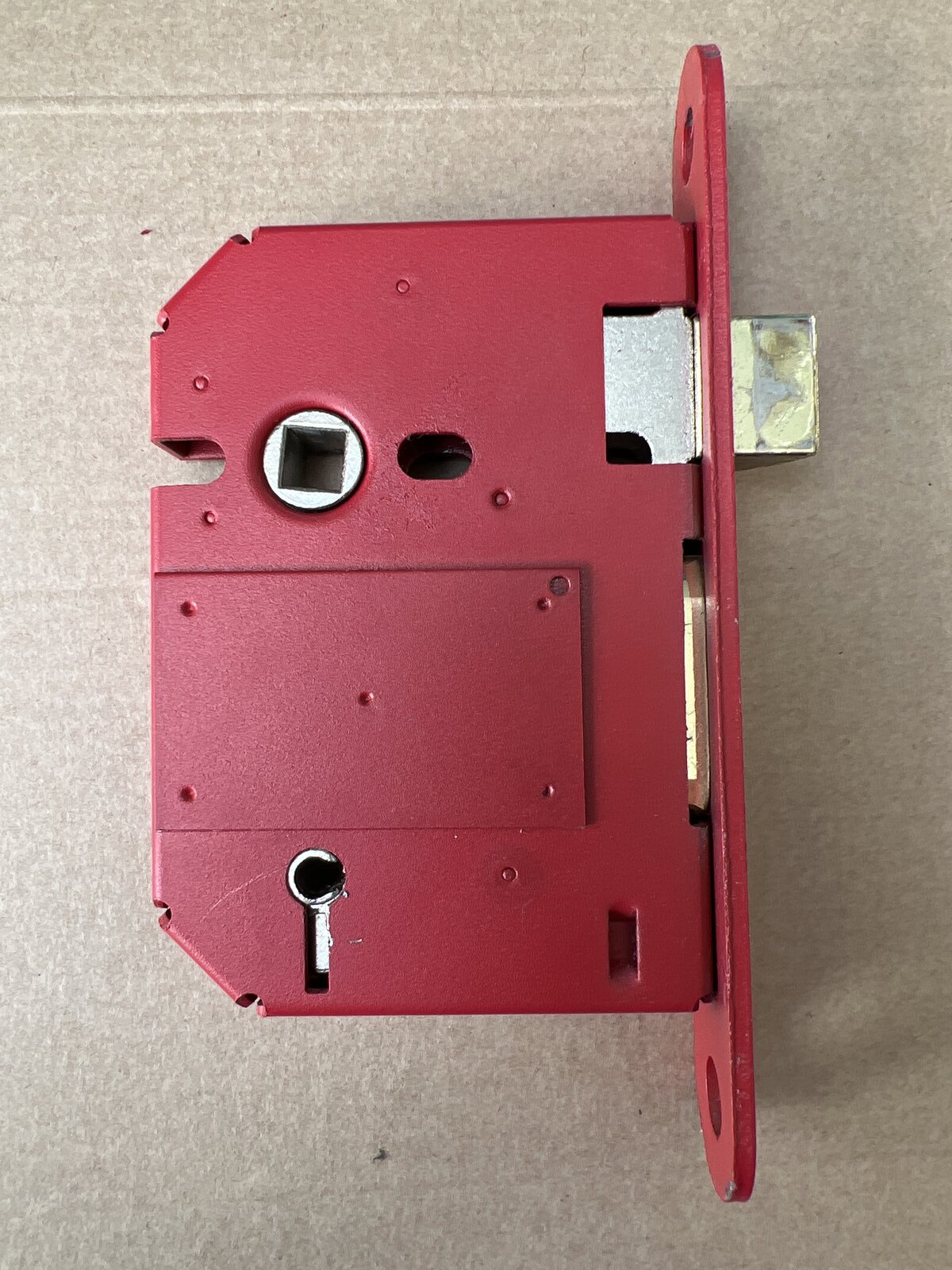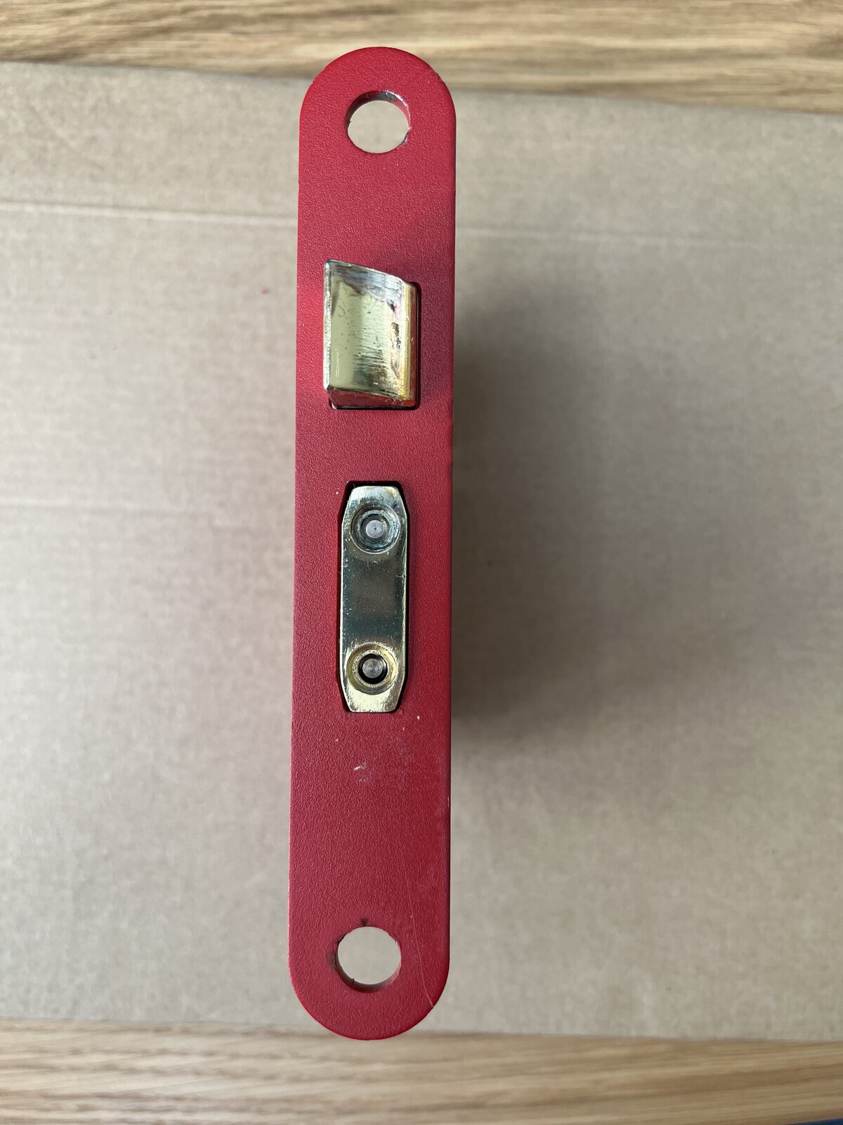 The red plate is simply a cover plate and can be pulled off to expose the lock mechanism.