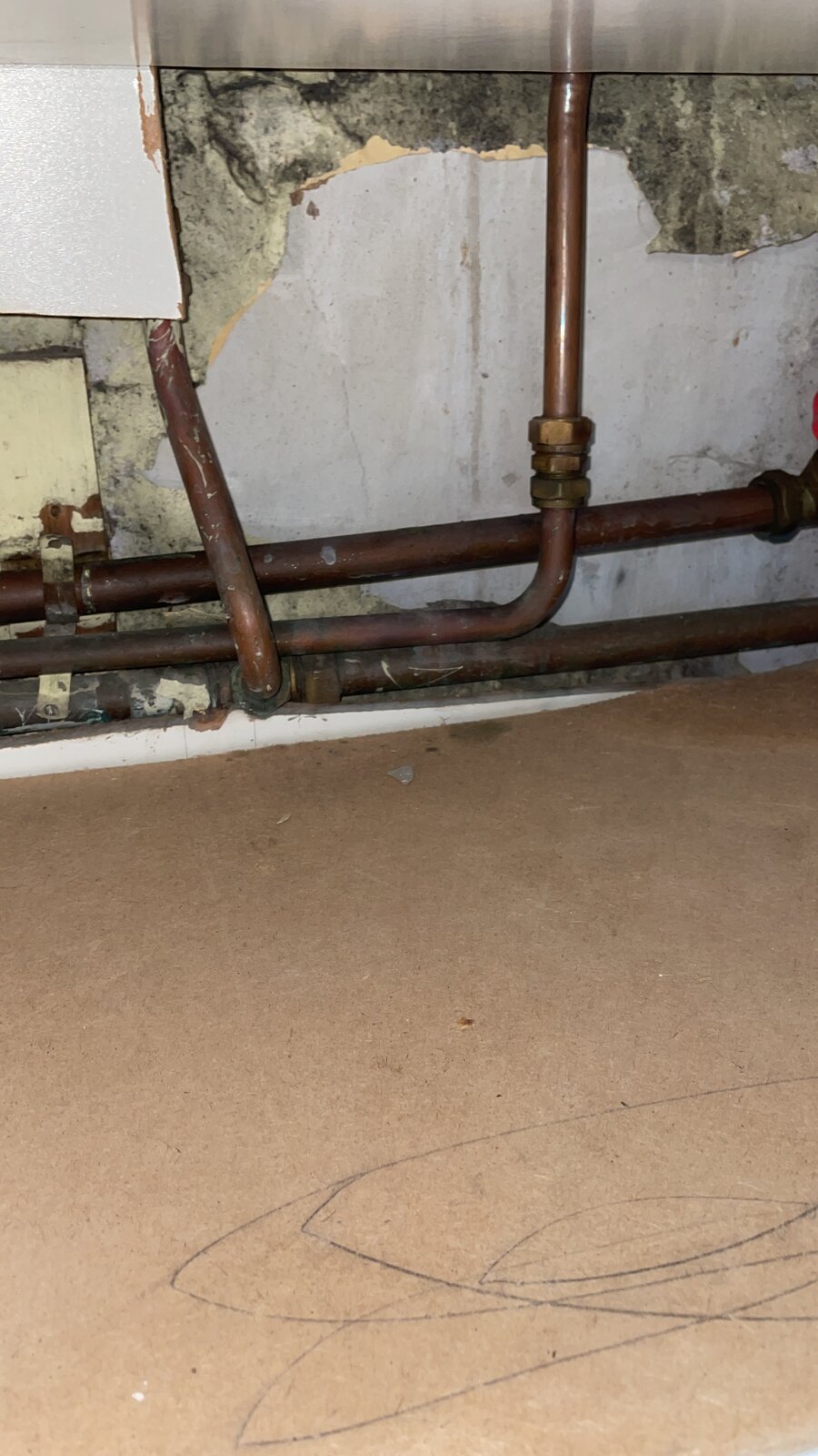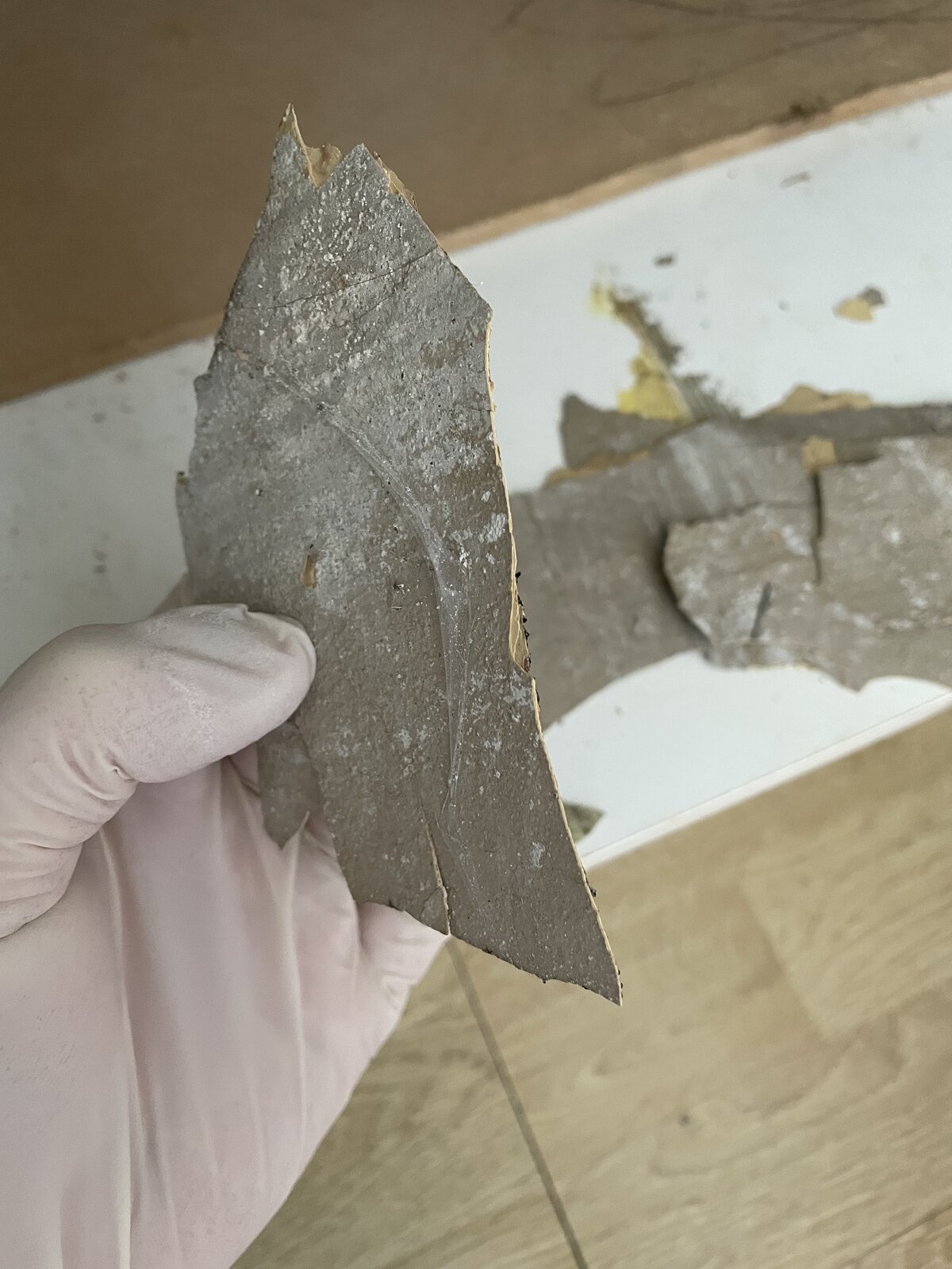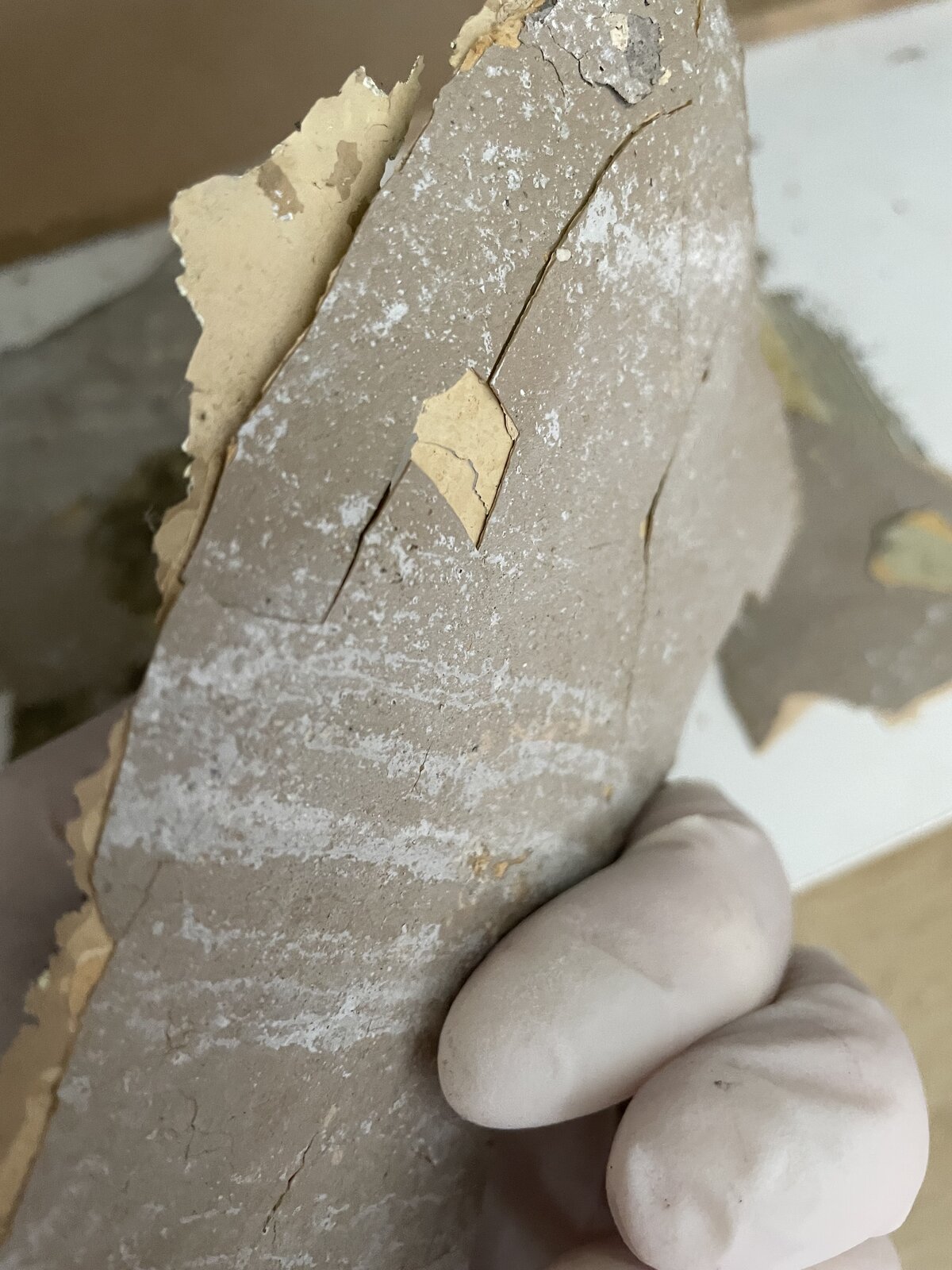I was pulling off old kitchen cupboards at the bottom, found mould behind units but when taking units off the wall started to pull away also, it’s like eggs peeling, does anyone know what this is? Is it safe?