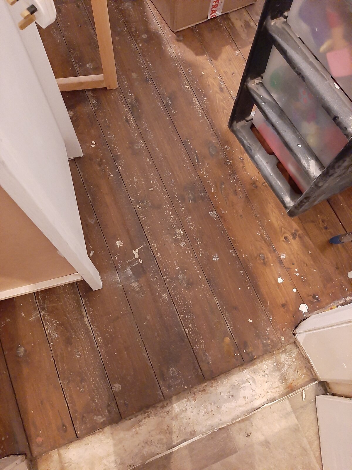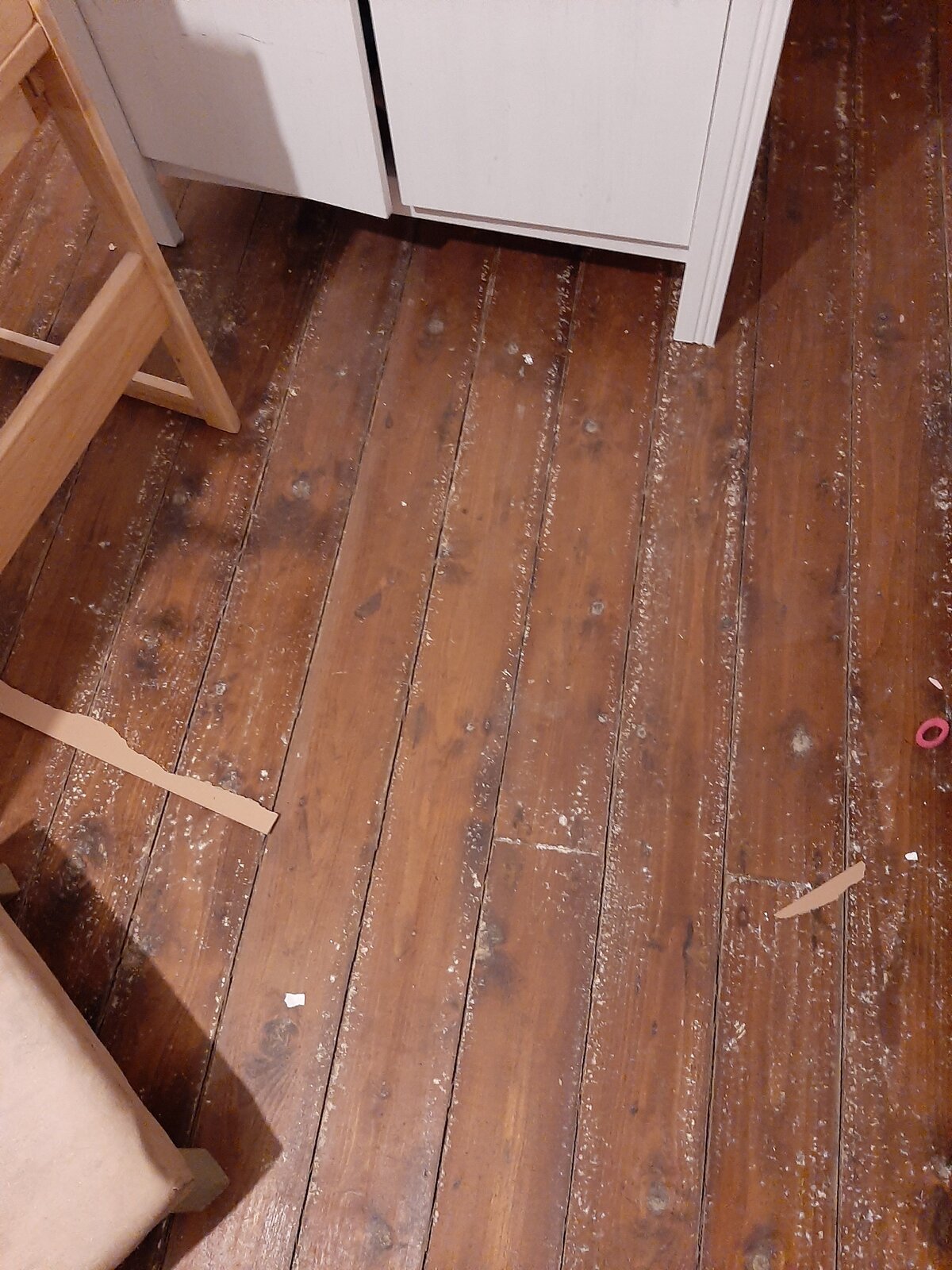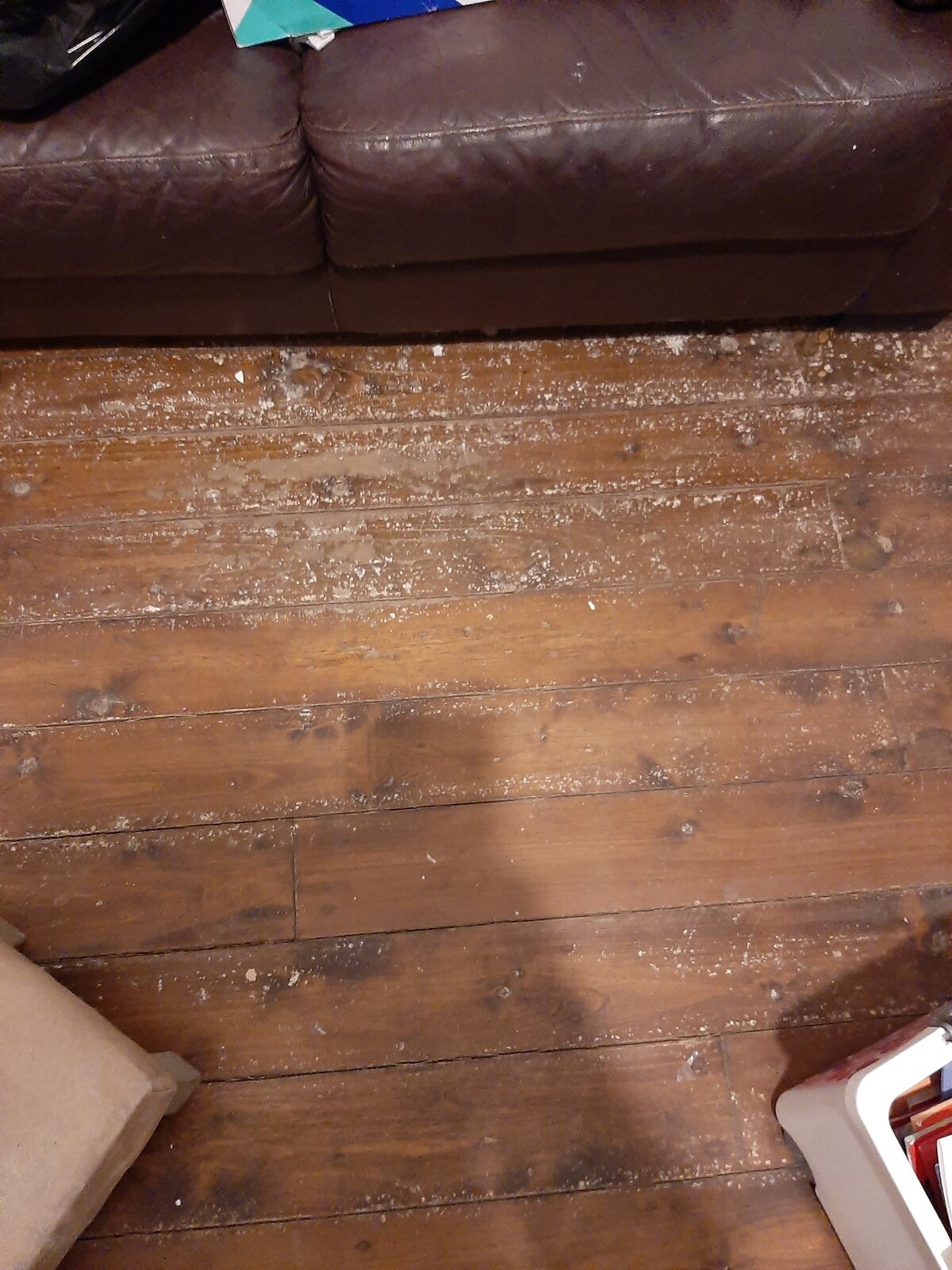 Hi all just after a bit of advice please. As pics show some white mould spots in patches in my living room suspended floor. The floor is double boarded with tongue and groove on top and standard floorboards underneath that. No visible dampness or major smell. The previous laminates were down for 20 years on top of a thin foam underlay. Is it worth trying to lift some of the boards for further inspection? Ive tried from one end and they are not even budging which could mean they have been glued down previously. Or clean treat and place new flooring? Thanks very much.