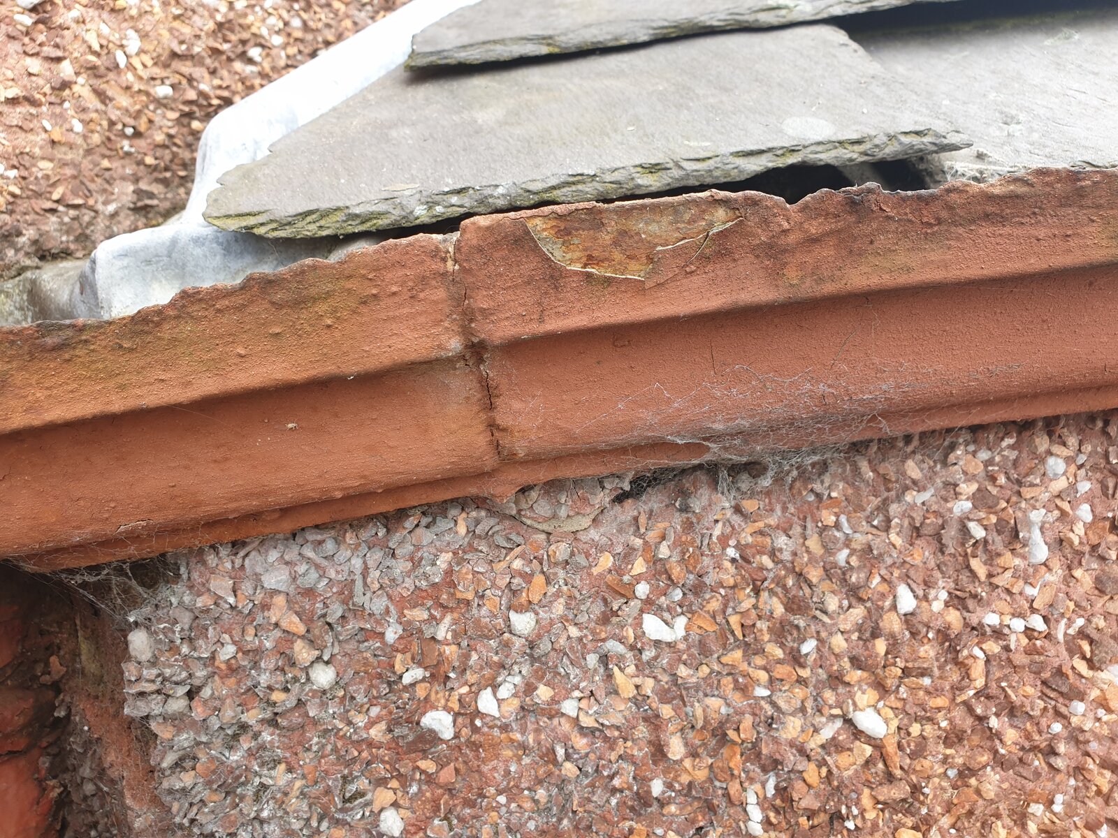 Mostly wondering how these are actually attached. My best guess is through the masonary below. Thinking the bolt to attach the gutters together maybe goes through before tightening up then the bolt thread placed in drilled holes? But tbh i m not 100 percent sure. Back of the gutters have started to break up badly. Water getting in behind harling thats now boss and needing replaced as well.
