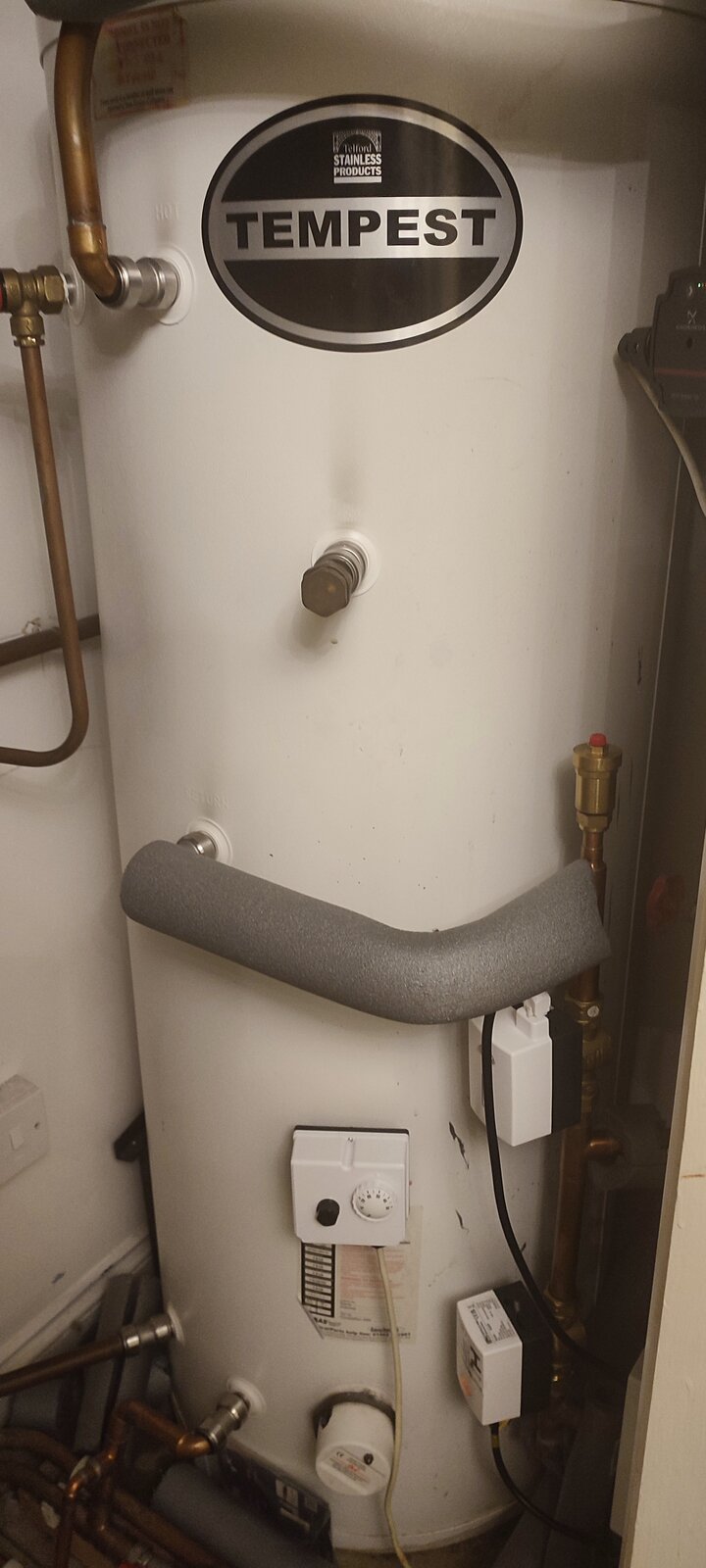 We have recently had a lot of work done on our pressurised hot water cylinder and boiler .