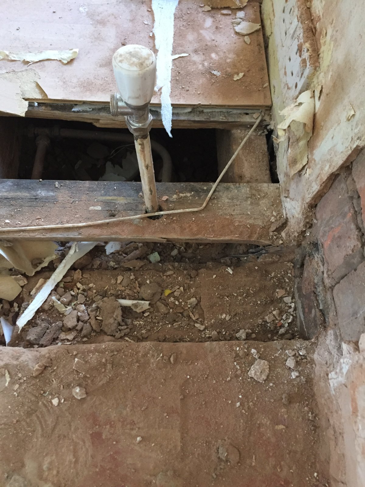 I am trying to move radiator into different position, on ground floor . Half the floor is floor is boards the other half is concrete. See pic. I want a vertical rad along the wall. at present it was horizontal rad.