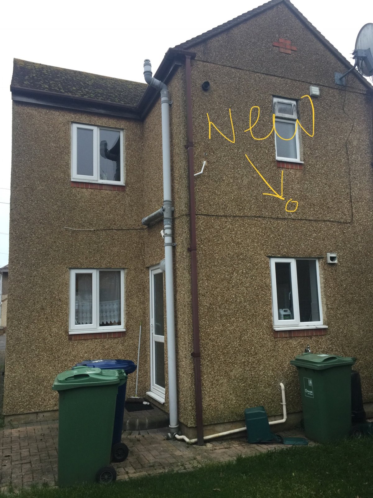 I have included a photo with a crude yellow drawing of where approximately the new pipe would be.