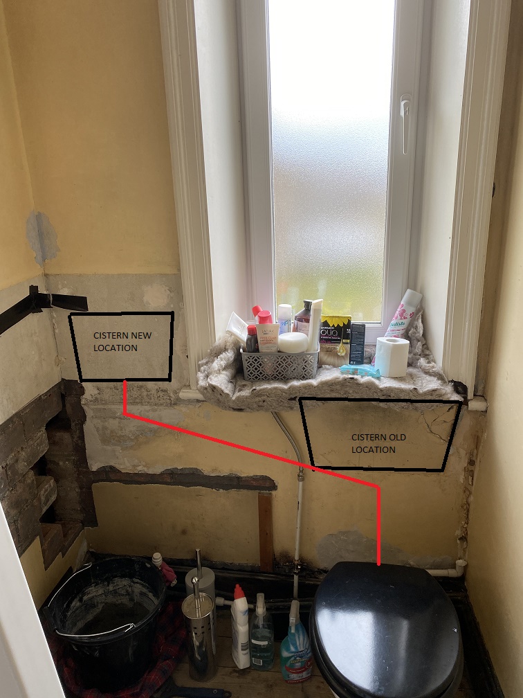 The new toilet will fit under the window cill height so I'm going to have to replace the cill. I also need to do some other work around the window. So am thinking of moving the current cistern down a couple of inches to allow me access. The dynamics of the window are that I'll need to slide the cill out to replace.