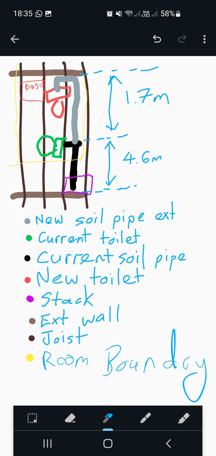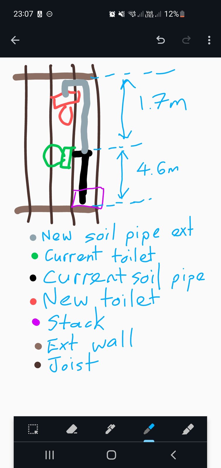 Hello, looking for some advice before pursuing any further... we have an toilet on the 1st floor kind of in the middle of the house. Would like to move the toilet which would require extending the soil pipe by 1.7m and to turn the toilet would require 3x90 bends, 1xvertical and 2x horizontal.
