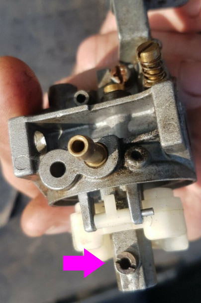 Blue arrow has 3 holes & i think it controls fuel that enters the carb / float.