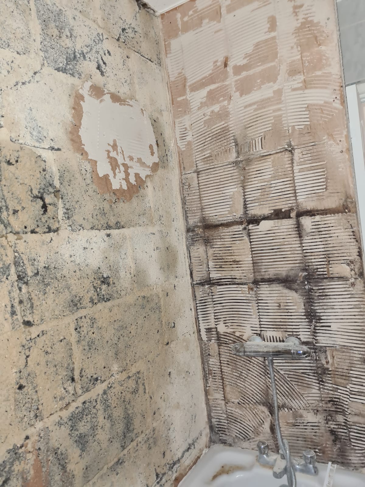 Hi guys I was in the process of redoing my bathroom and when I started taking off the tiles the plastering underneath was so weak it was crumbling away in my hands.