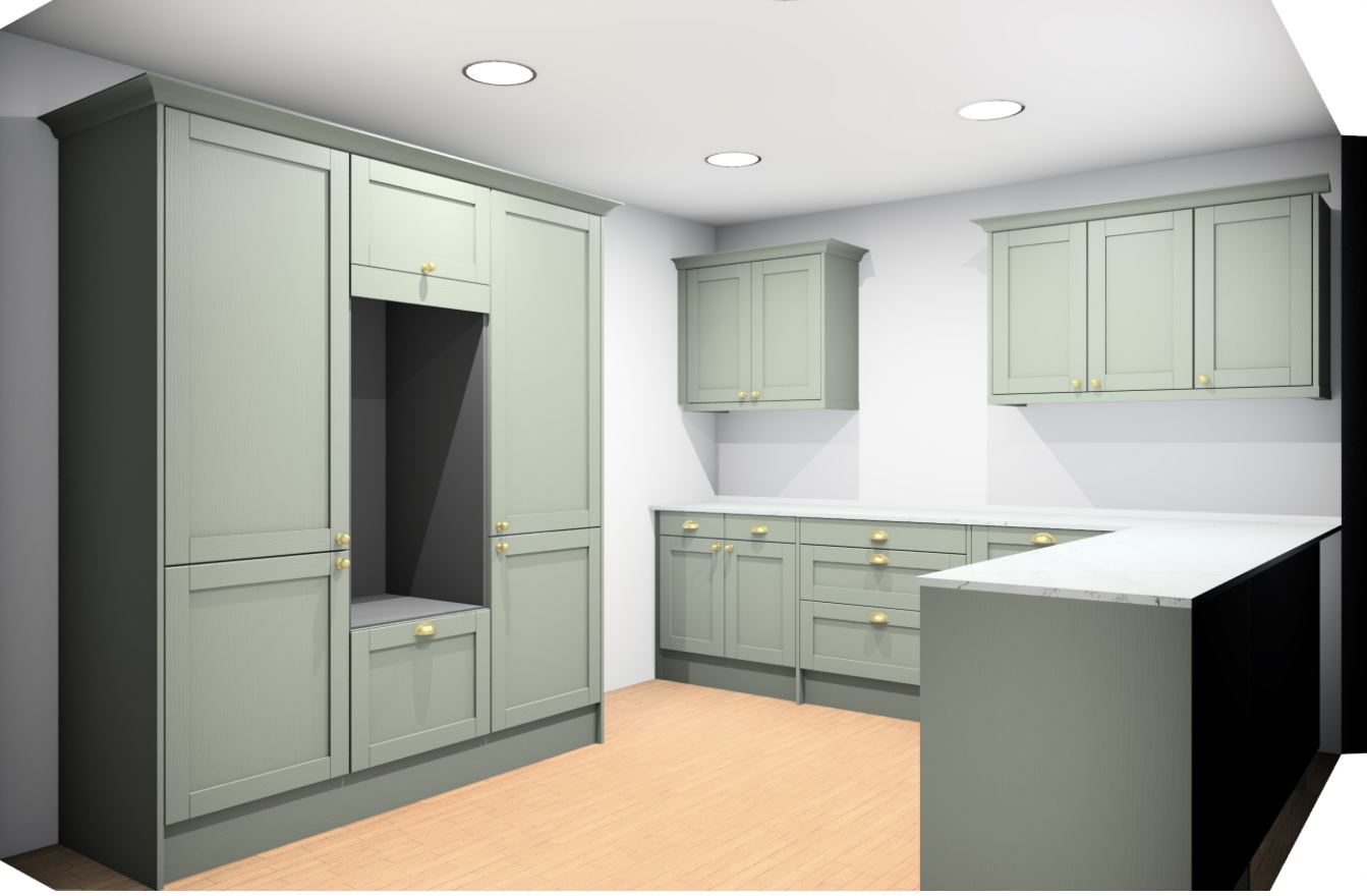 That looks great. I can't believe how quick you did it.I don’t quite know what you mean but there are tall cupboards going either side of that (fridge freezer and larder unit) and they will be set to the same height. Will look something like this when done.