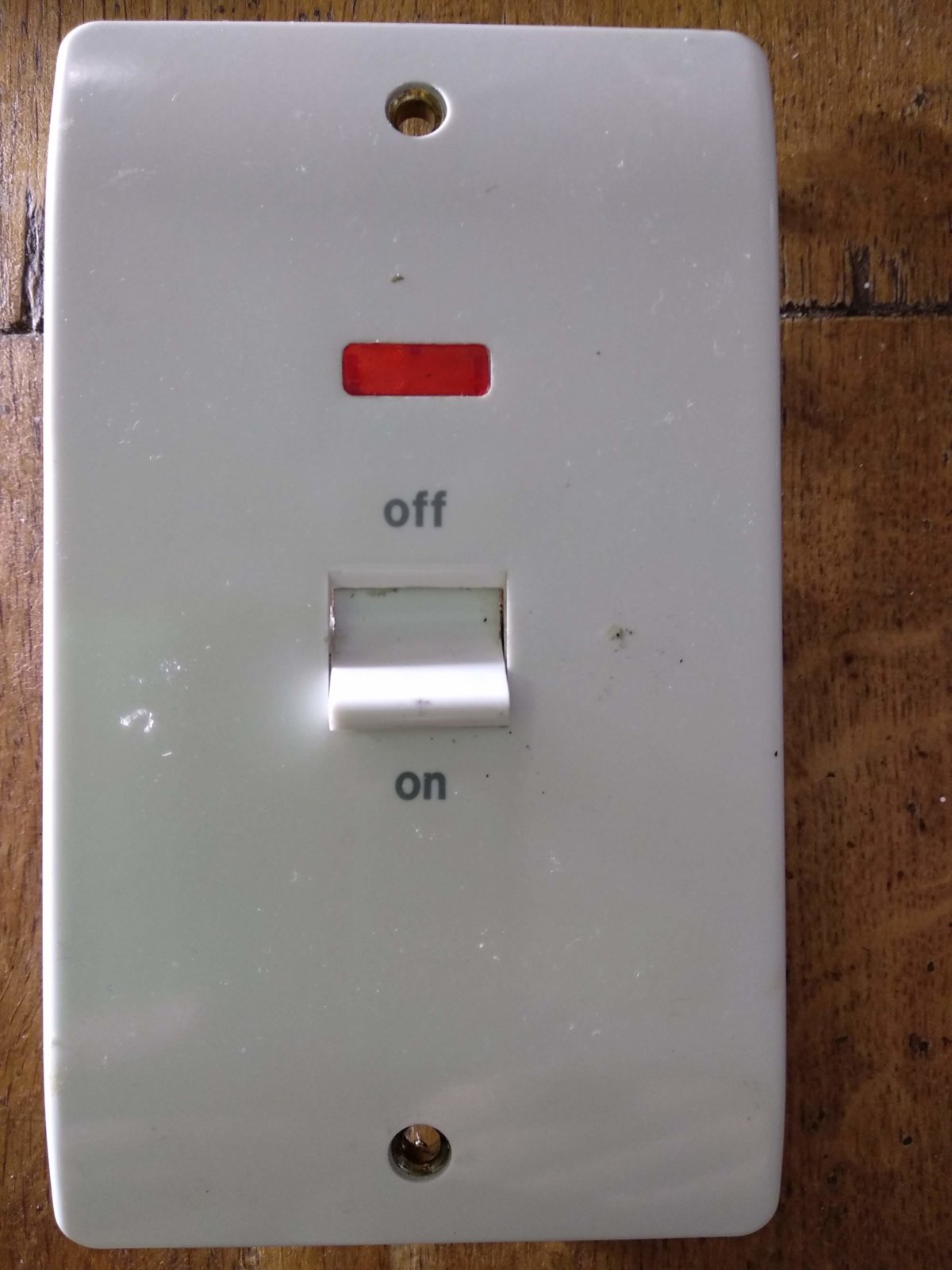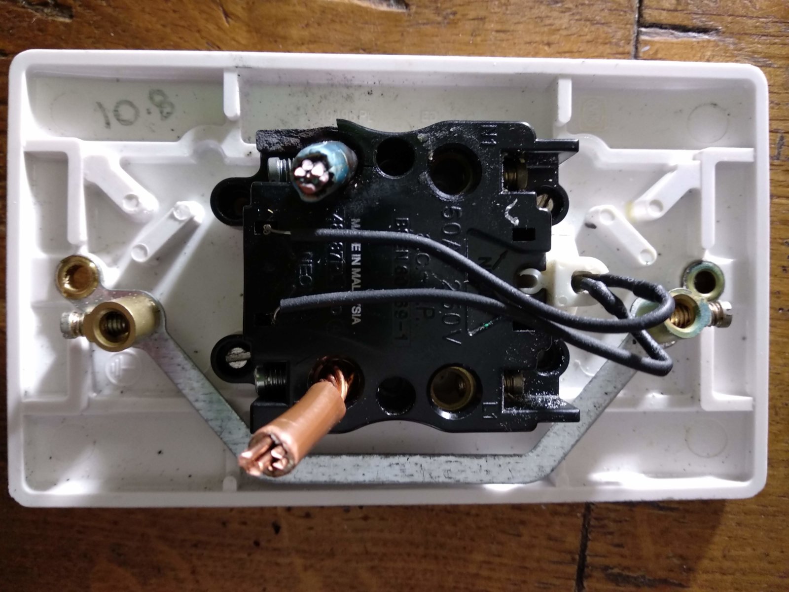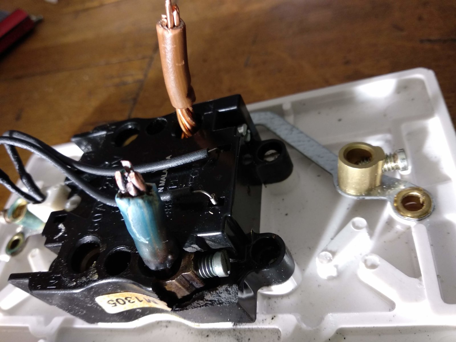 Noticed neon light flickering so pulled switch, peeled wires back to new and replaced with another MK 50 A dipole switch.