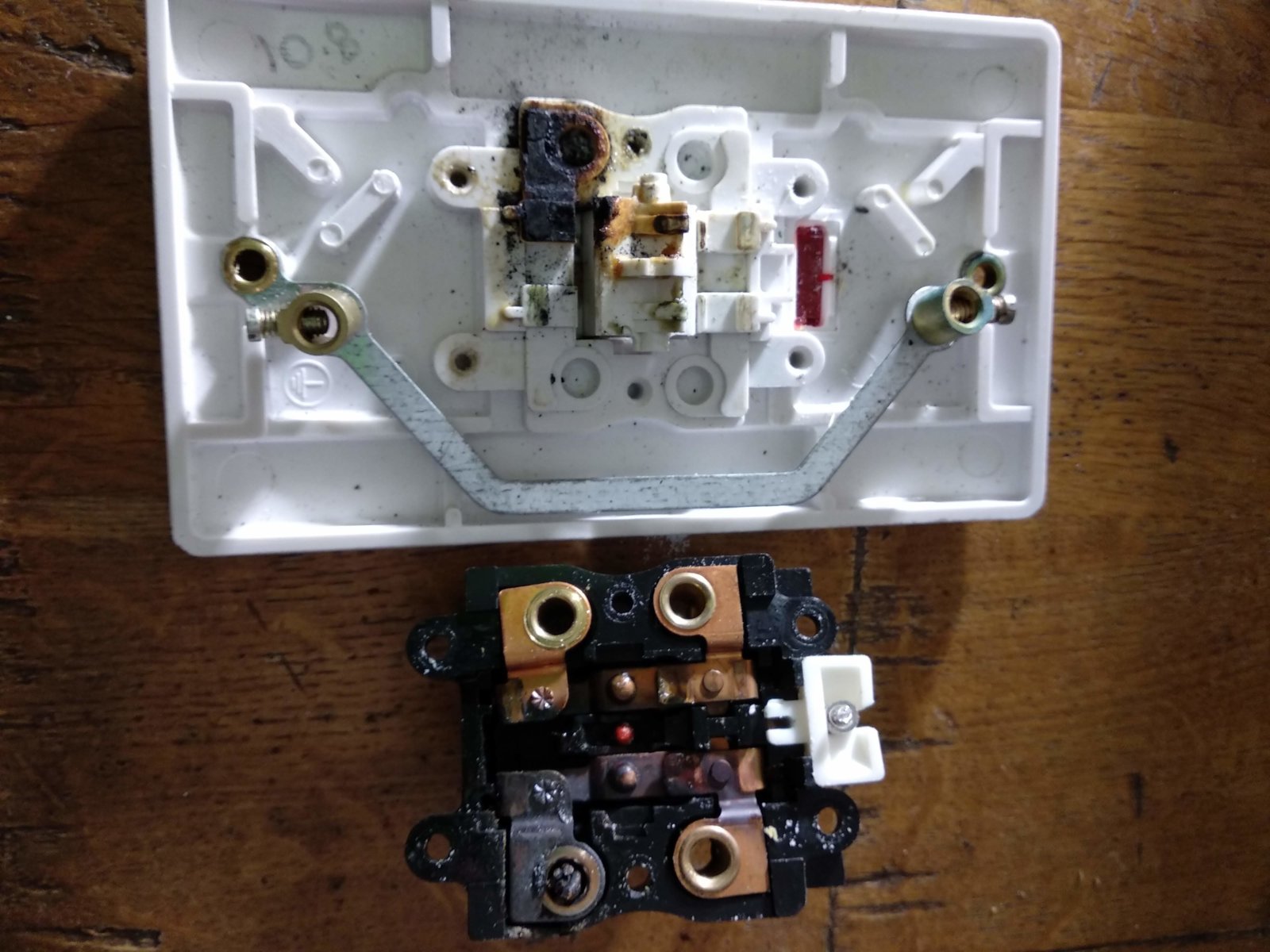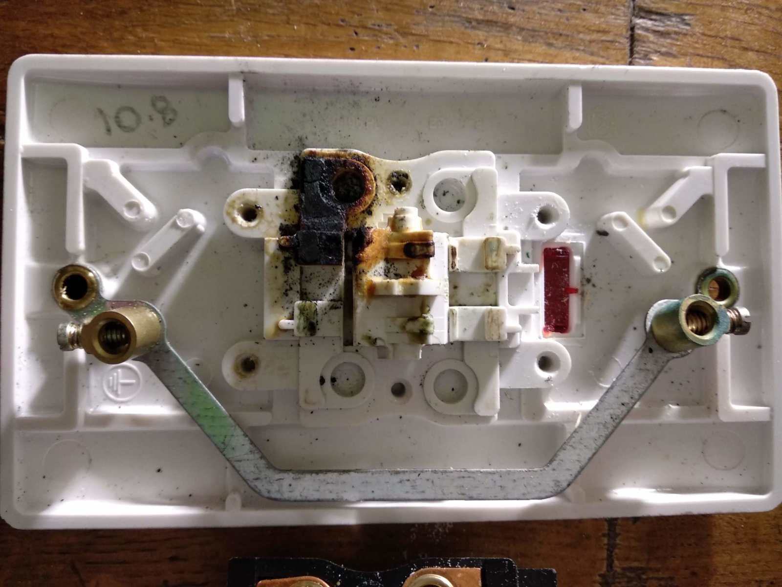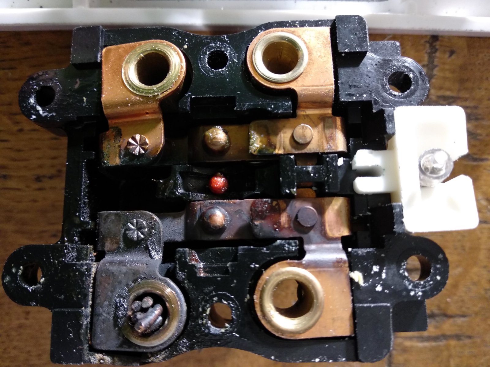 Noticed neon light flickering so pulled switch, peeled wires back to new and replaced with another MK 50 A dipole switch.