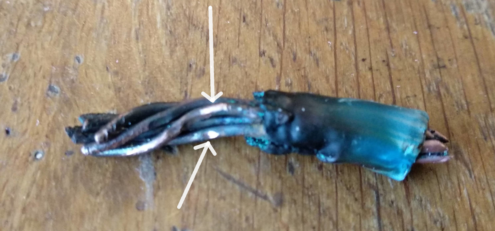 Photos show N2 terminal was overheating and had partially melted blue sheathing around it.