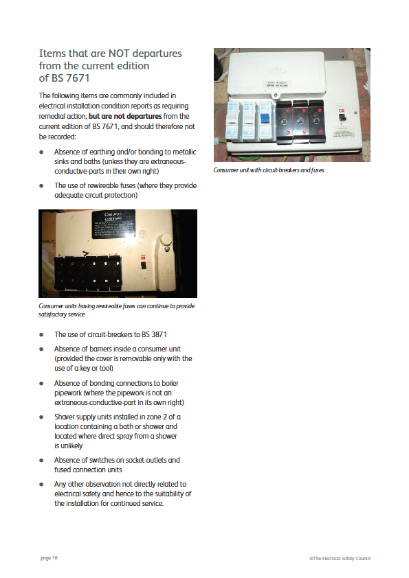 That leads me to think that the idea is that for the landlord this becomes "just another bit of paper" he needs - look for the "satisfactory" tick on the front and ignore everything else (though I'm sure many will be doing that anyway). But also I see scope for the unscrupulous part of the sparks industry to make extra work. For example, AIUI plastic cased CUs will warrant a C3 as not to current regs but the installation can still be satisfactory. If someone is expected to summarise the whole thing into two tick boxes - how many will be tempted to declare it unsatisfactory for this reason alone ?