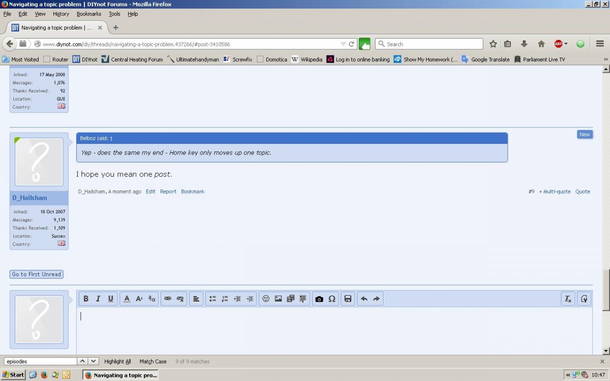 I had just posted a reply to a topic. I hit the Home button to go to the top of the page, but it only moved up to the top of the reply before mine. PgUp wouldn't take me any higher nor would the Up key. I could only move between the bottom of the page and the top of the reply above mine.