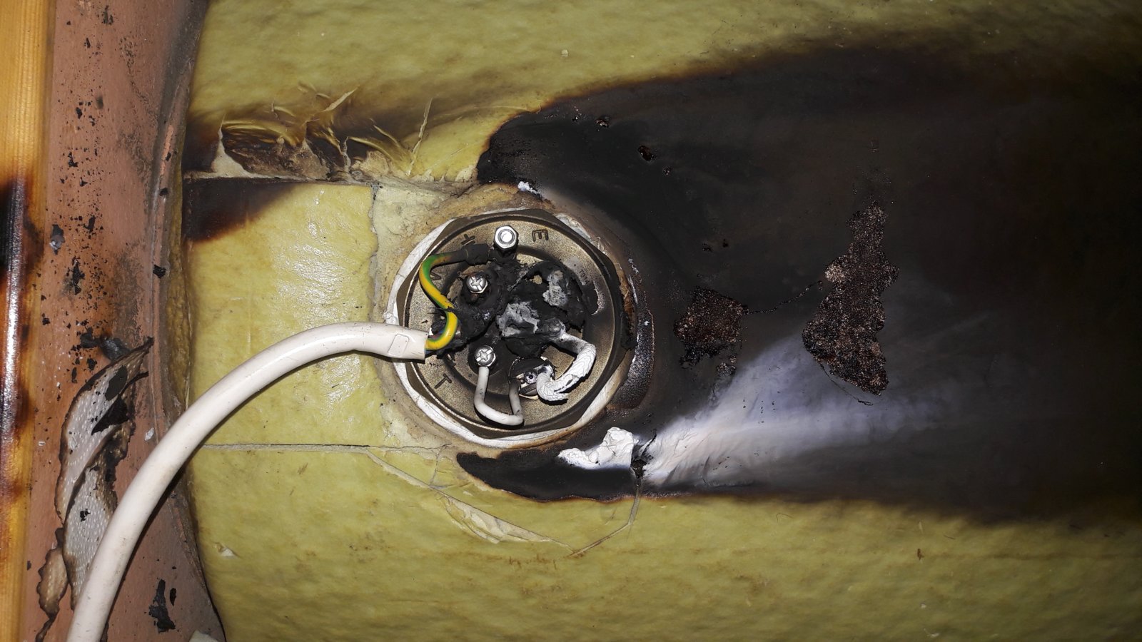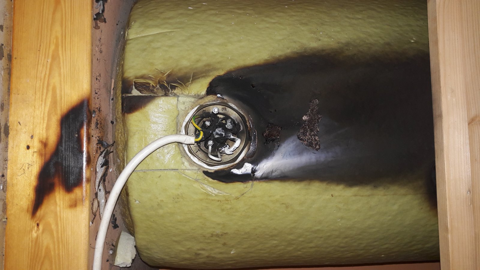 fortunately the smoke was smelled and the fire extinguished before it had taken a hold (the cupboard was full of dry bedding, towels etc)