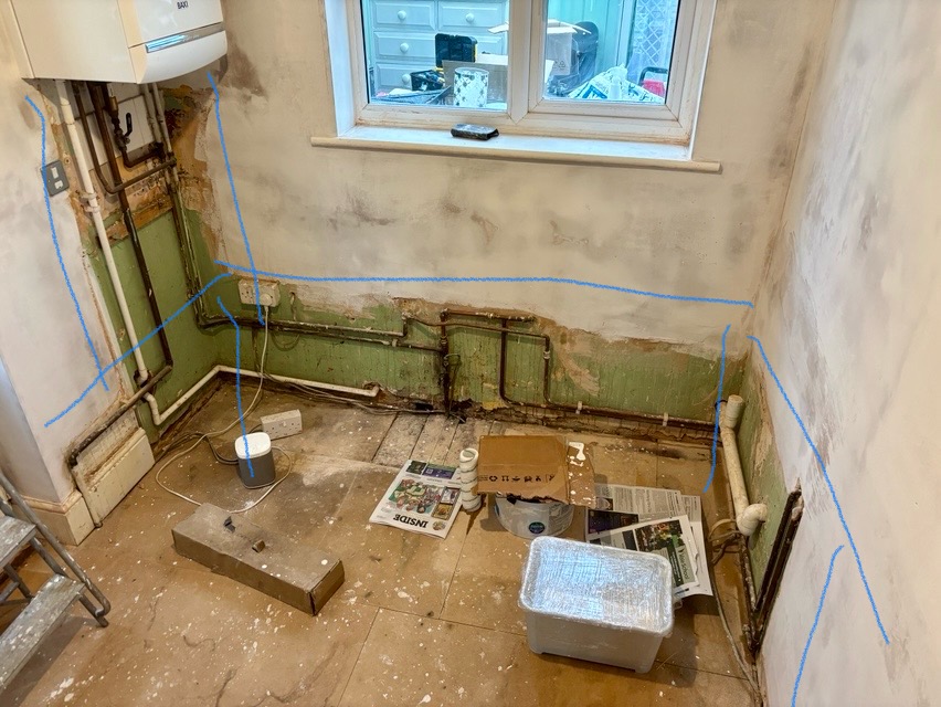 So, boxing in where I’ve marked in green and then putting in a kitchen wall cabinet to cover the boiler perhaps?