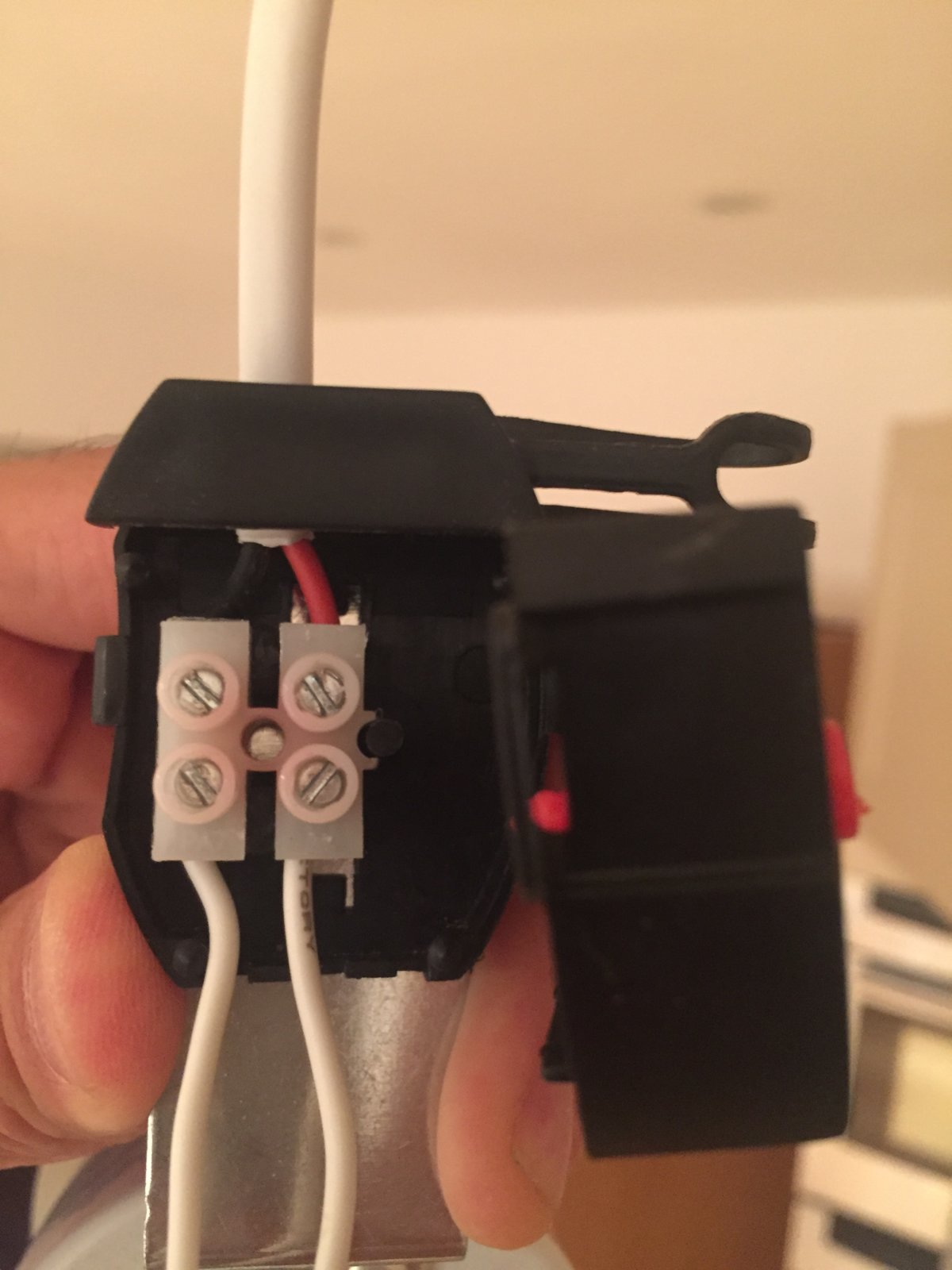 It would appear that I need to replace this part in the attached photo in my ceiling spot light. I've already replaced both the lamp and the MR16 wire between the light and this black box and it didn't help so my next step would be to attempt to replace this white connector which, judging by the picture, seems burnt if I read it correctly.