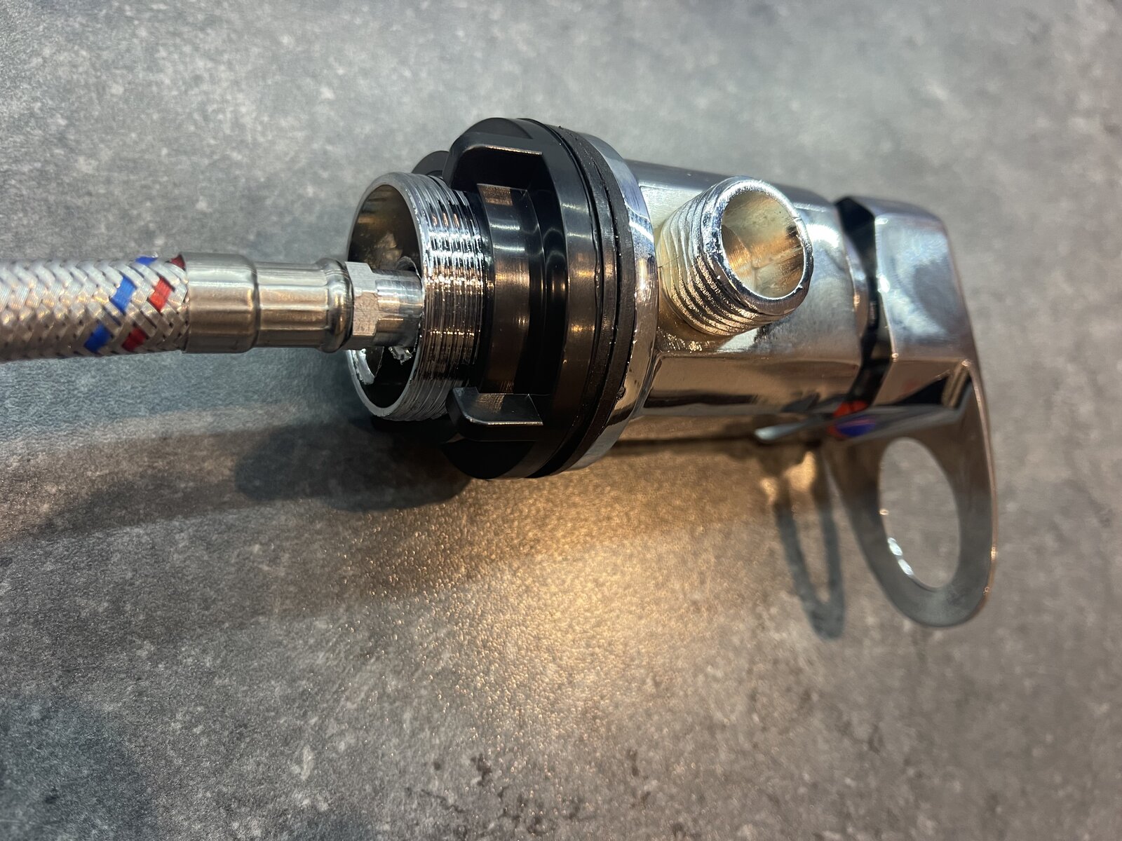 He has bought a small shower mixer valve which came with flexible tails for the shower cubicle.