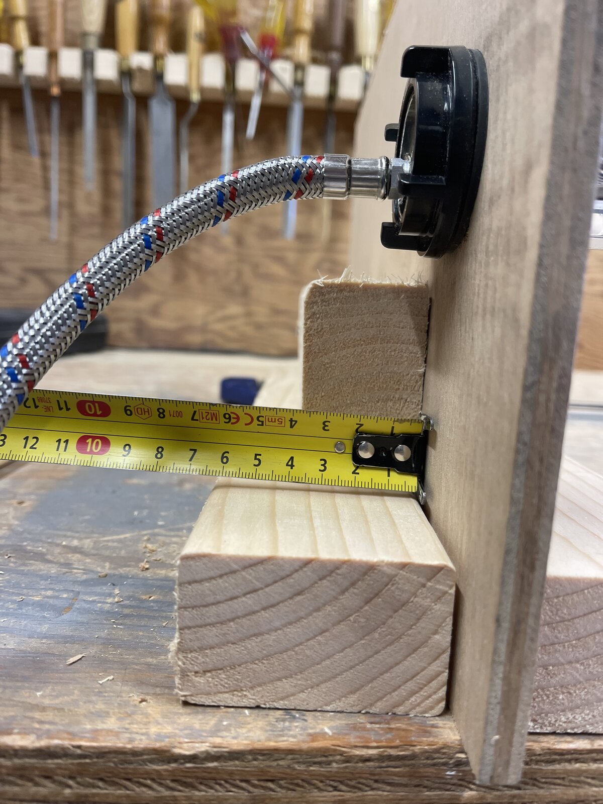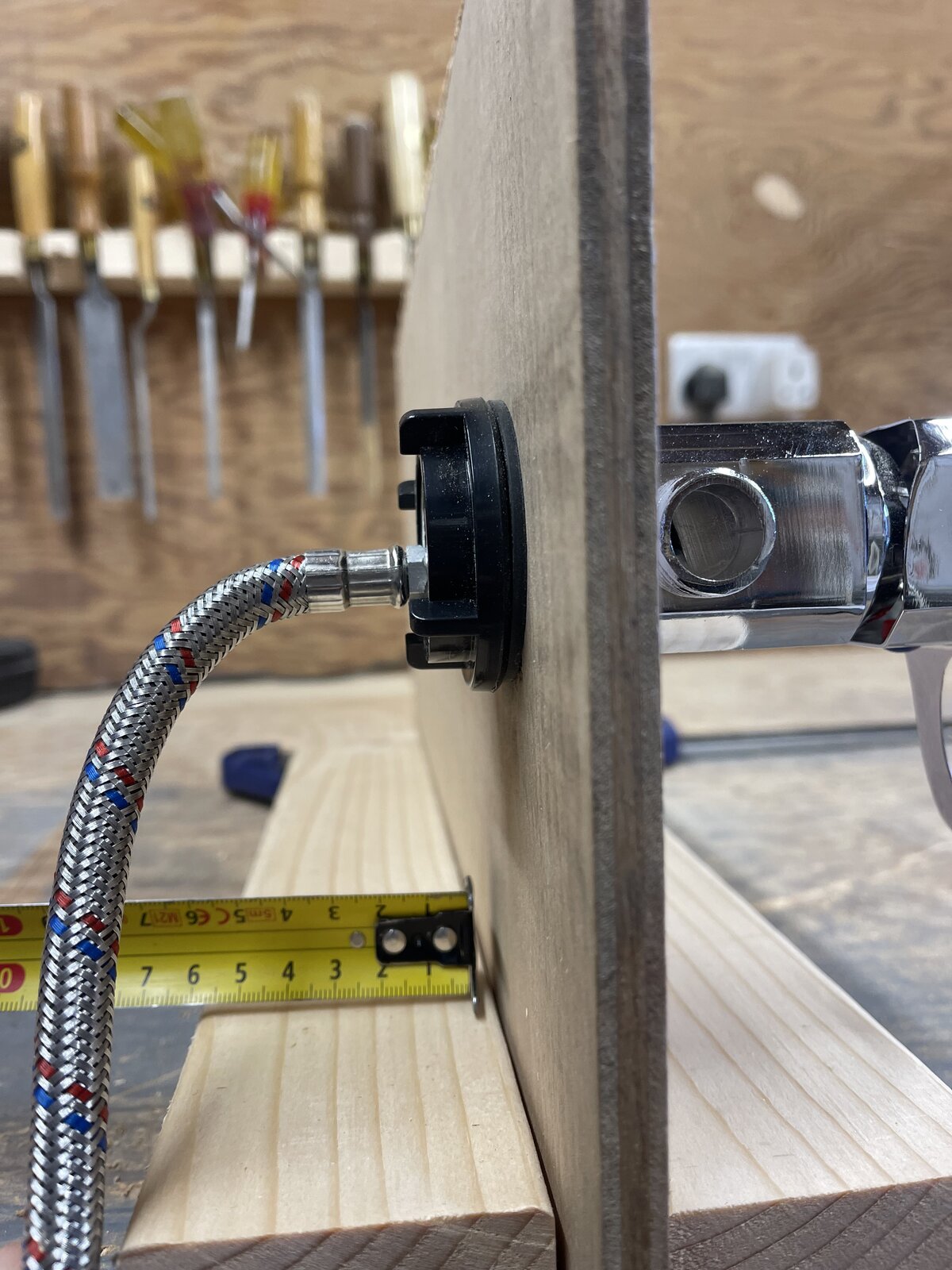 We were hoping to fit the hot and cold pipes for the mixer valve within the wooden framing of the shower cubicle but unfortunately when trying to bend the flexible pipes they just won't bend enough to fit within the frame.