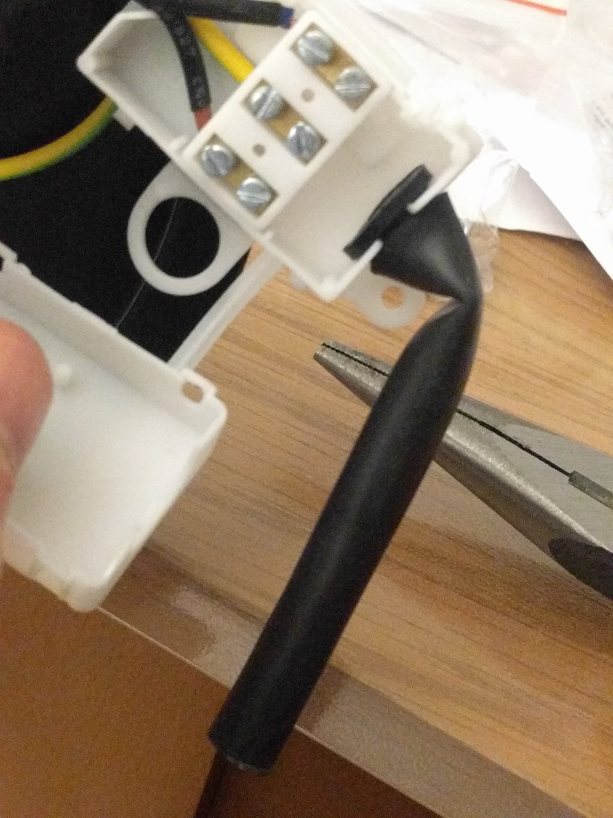 Yes it's got that rubber sheath for the incoming cable and the outgoing is sheathed all the way to the bulb holder.Is the cable within the fitting sheathed?