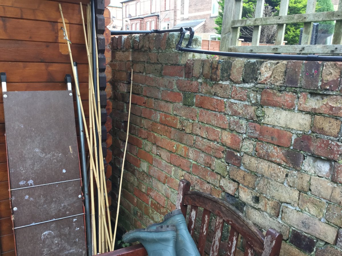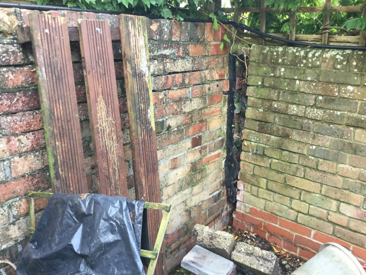 They don't have much money, any inexpensive solutions, that doesn't involve totally rebuilding? It's about 1.5m high by 4m long. The top is out by maybe 150mm.