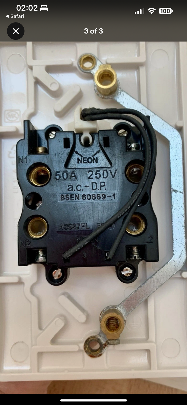 The on/off operation works correctly and supplies/disengages power to the electric shower. However, the neon light always stays on. I've not looked inside yet. Can this be fixed or does the whole switch need to be replaced?