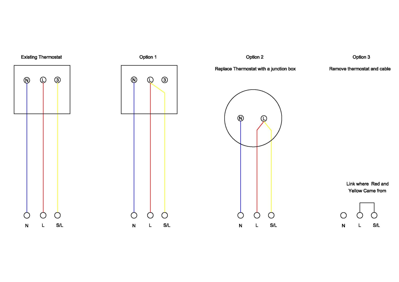 Am I right to confirm that option 1 doesn’t require me touching the junction box but I just need to open the existing thermostat in the hall way as shown on picture 1 and wire the yellow cable from (3) into the live wire?