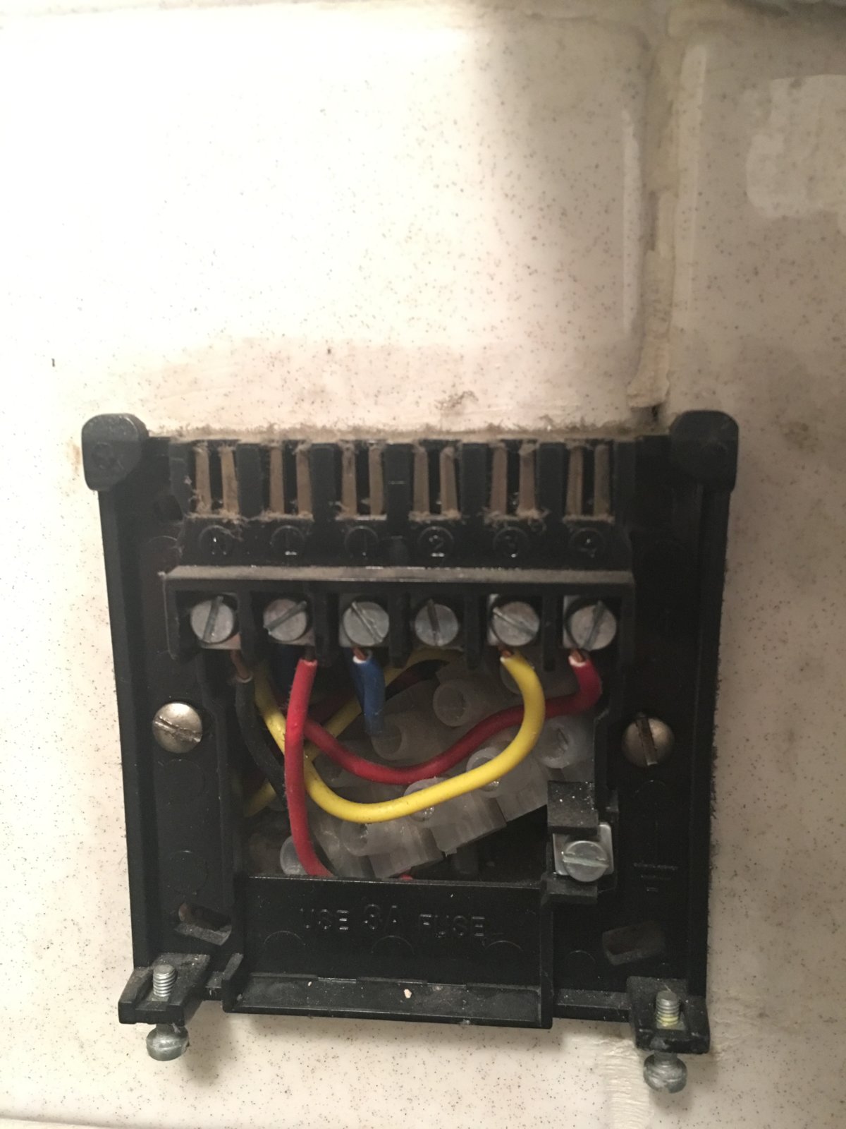 Looking at my junction box I’m pretty sure the thermostat is connected to the right hand side.... but if I do choose this option, I don’t see brown but only blue, red and yellow? Am i misreading somewhere? Sorry to be a pain :-/