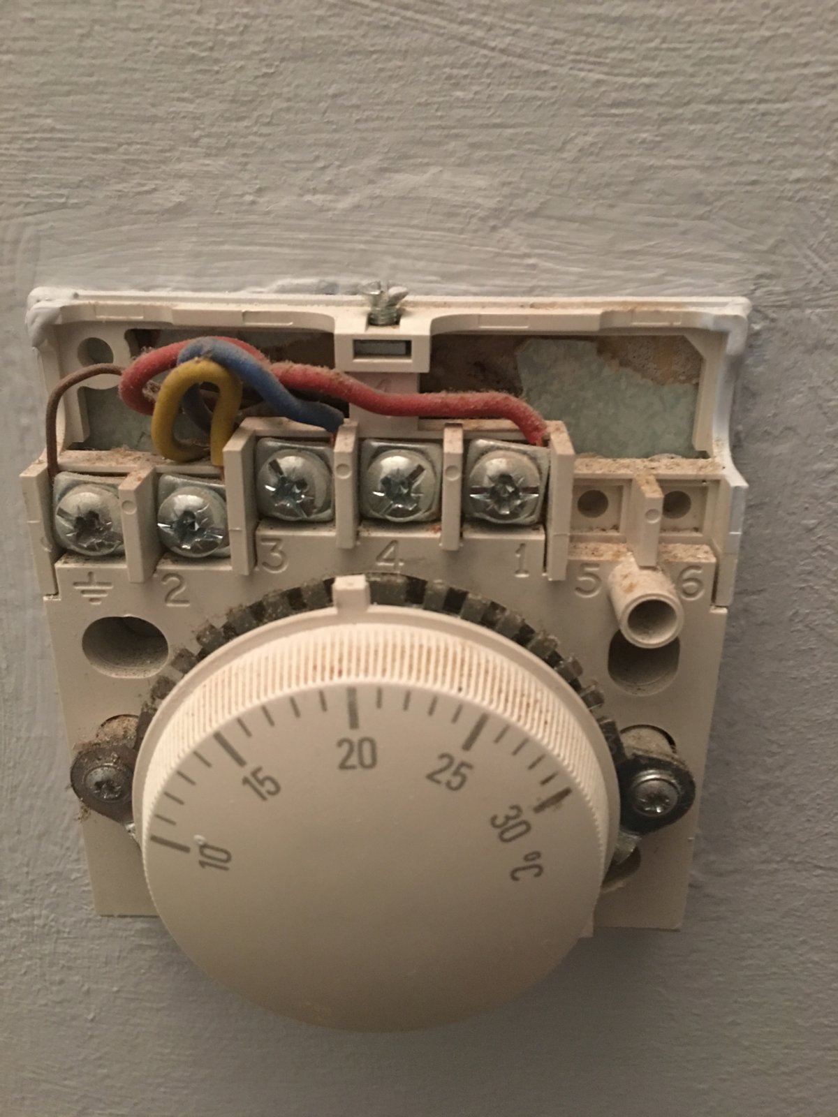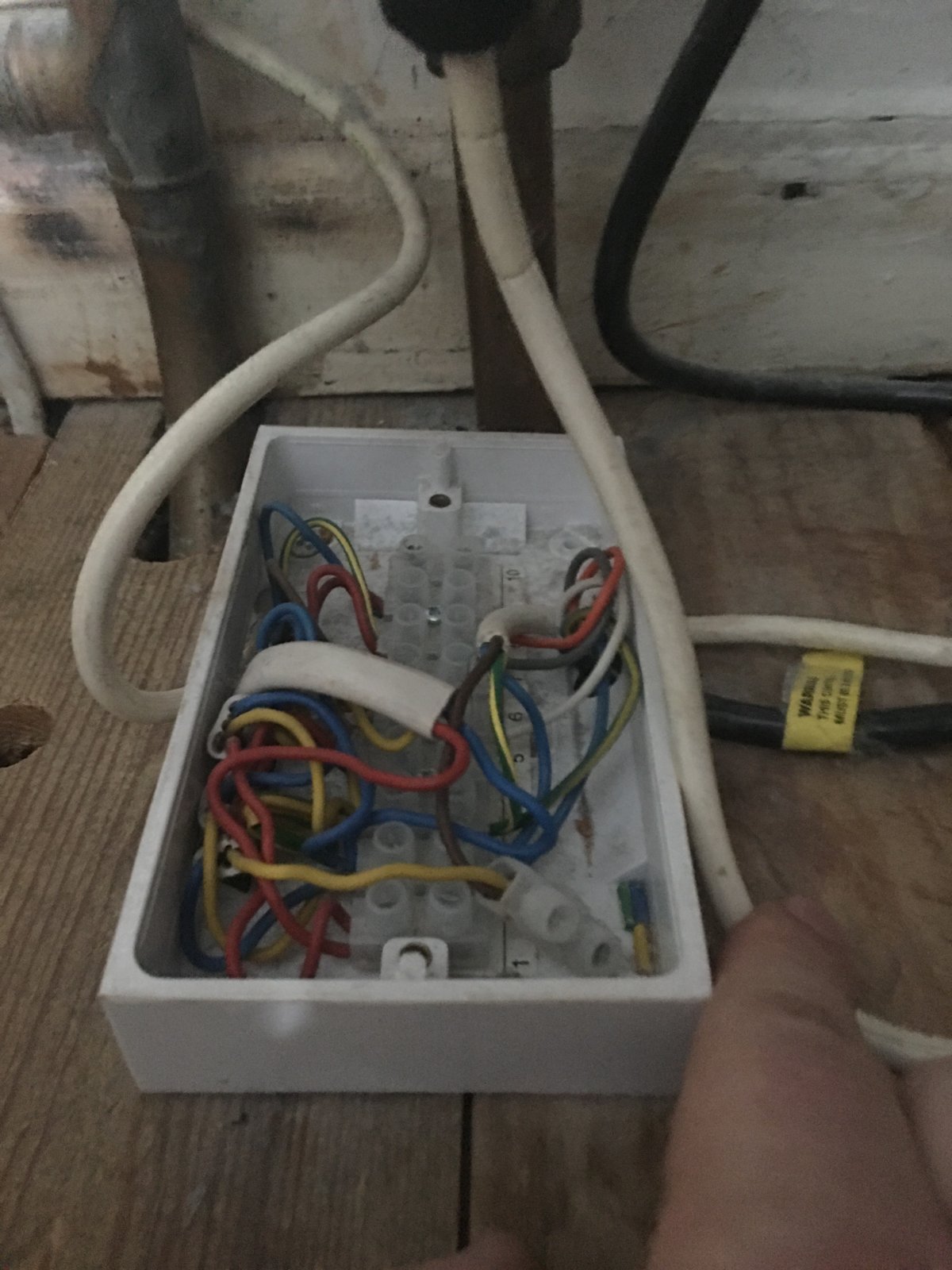 Here is the wiring of the wired central unit next to the tank in the airing cabinet: