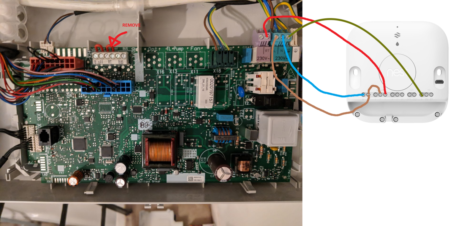 You’ve got the eBus still connected and a 230v room stat connection. So unfortunately you can’t wire it, unless you take a separate wire from heat link to the Nest, so would have to be the usb otherwise.