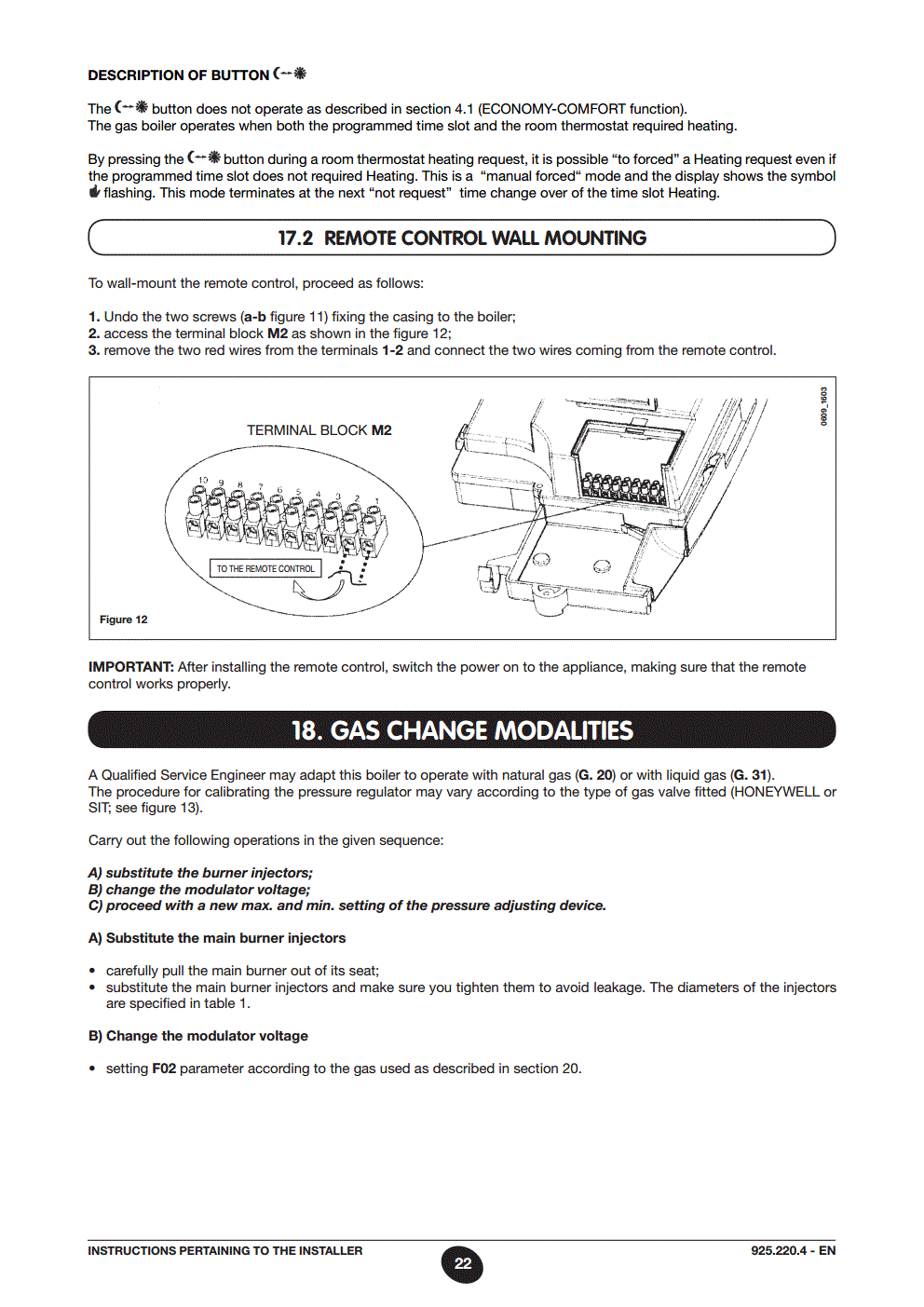 Installing NEST learning thermostat on Baxi hT 330 has external wall BAXI thermostat, connected to M2 boiler connections, 1&2.