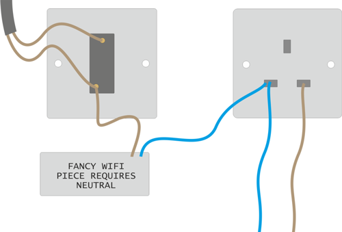 Fitting one tonight to the garage lights, these were added by a local electrician shortly after the build. There is no neutral present on this light switch.