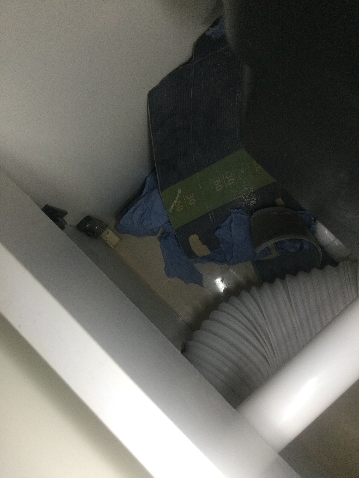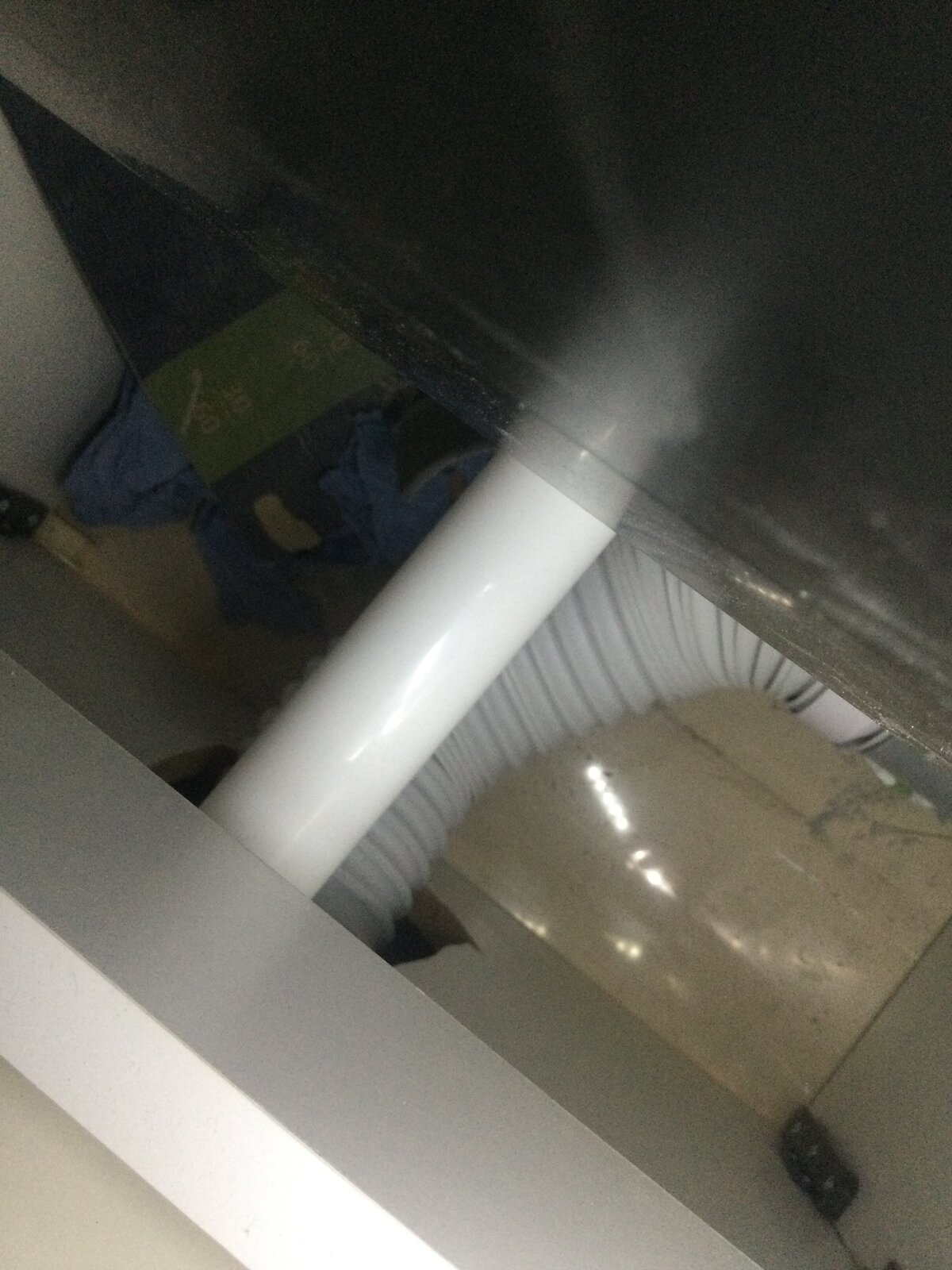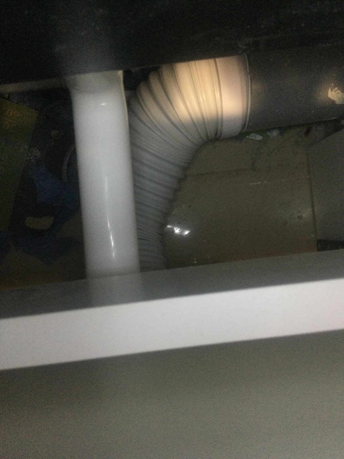 Anyway, I removed the front panel of the toilet unit and apart from the rubble which was left in the cavity, I was surprised to see that the contractor had used a flexi pipe which actually runs uphill from the toilet to the waste. I'm no expert but from where I'm sitting that doesn't seem like a good idea. Could this be the source of the smell? I'll attach some pictures to the post. Unfortunately, these are not the best quality and it's difficult to see the extent of the difference in height.