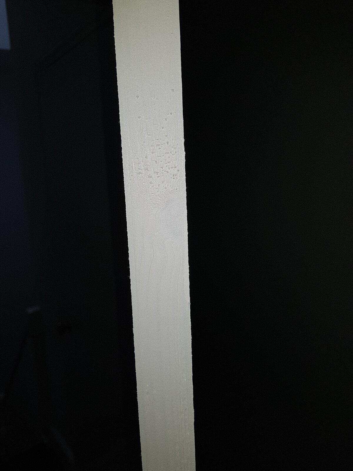 The door came primed from the store but the edge was raw after the carpenter had to trim it.