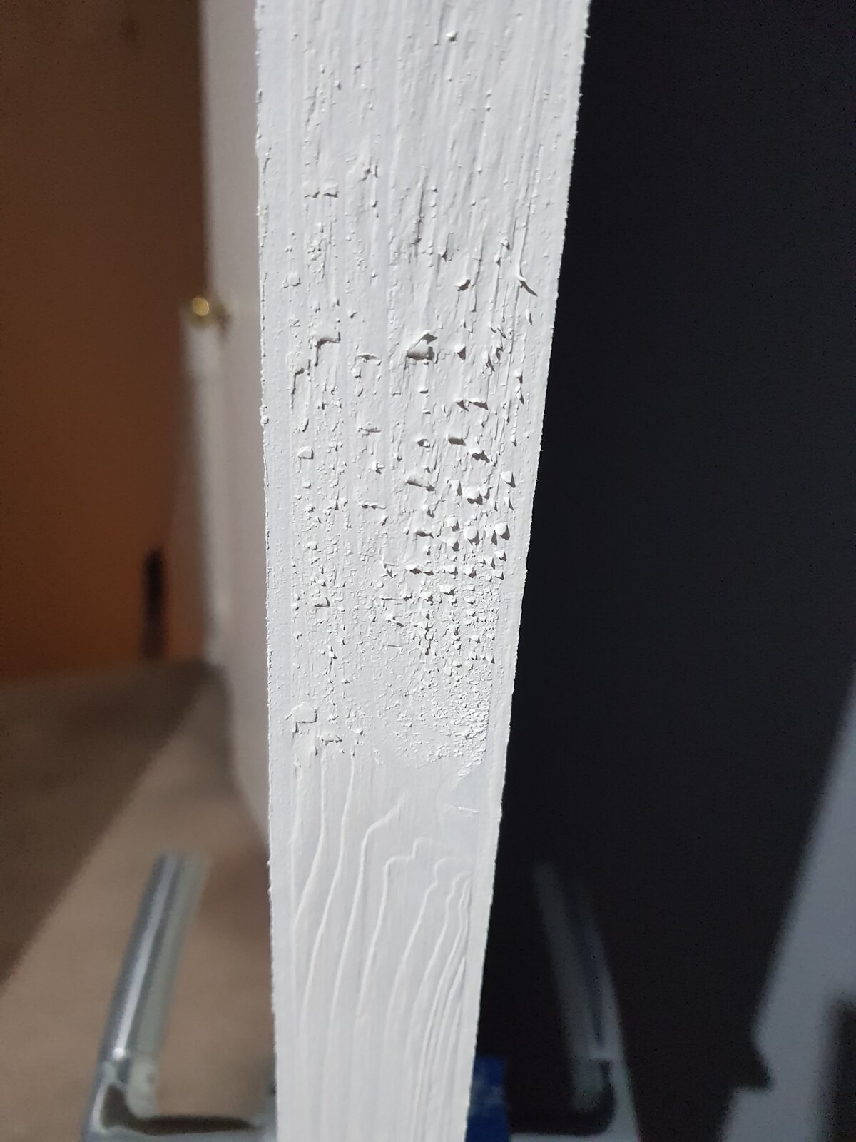 I found the edge had bits sticking out and pointed this out. He told me sometimes this happens to doors when they are painted and left it like this.